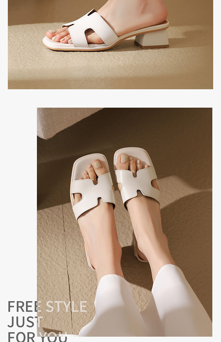 商品名称:夏季简约复古女鞋外穿时装拖鞋女舒适一脚蹬高跟凉拖鞋女 665498