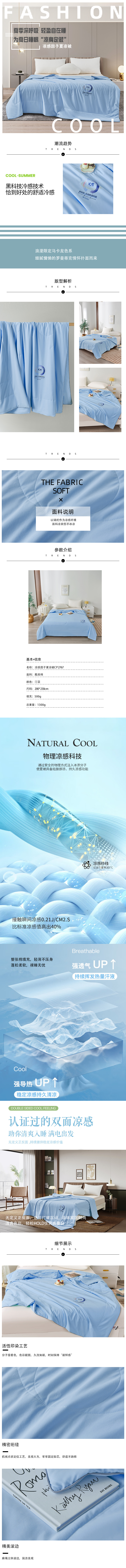 商品名称:GRACE/洁丽雅汀蓝凉感因子夏凉被200*230cm 1300g
