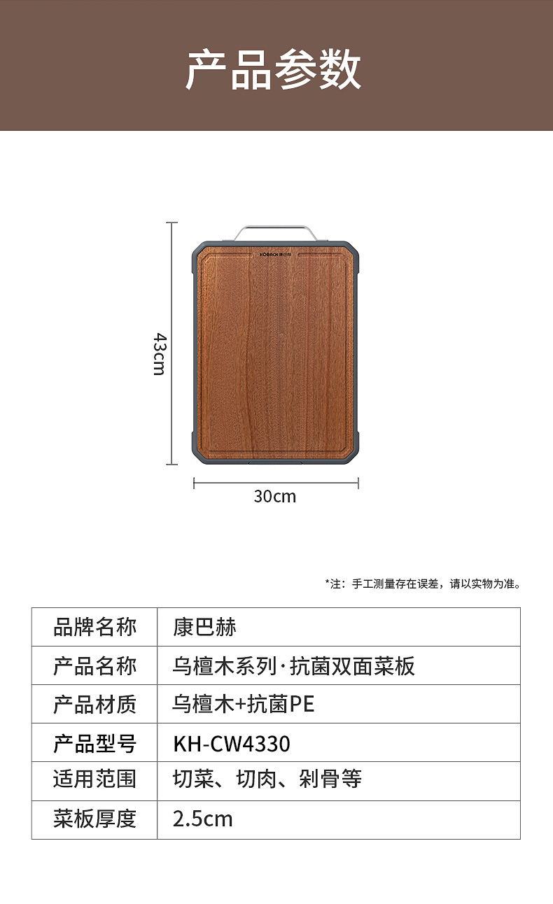 商品名称:KOBACH/康巴赫乌檀木系列抗菌双面菜板KH-CW4330