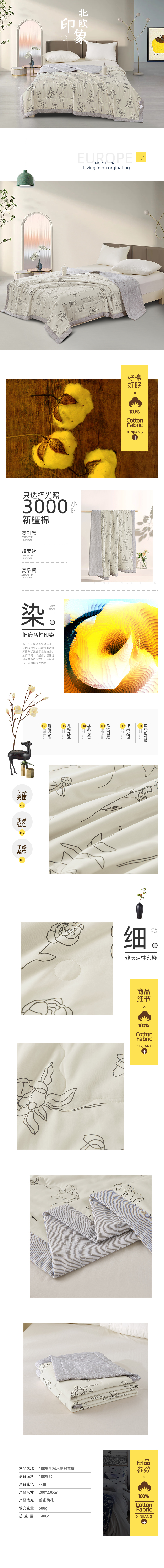商品名称:GRACE/洁丽雅花柚100%全棉水洗棉花被200*230cm 1400g