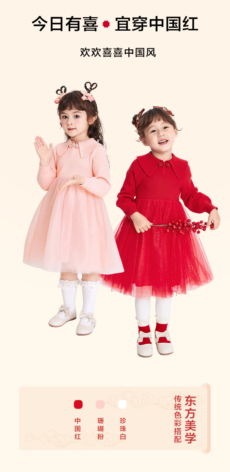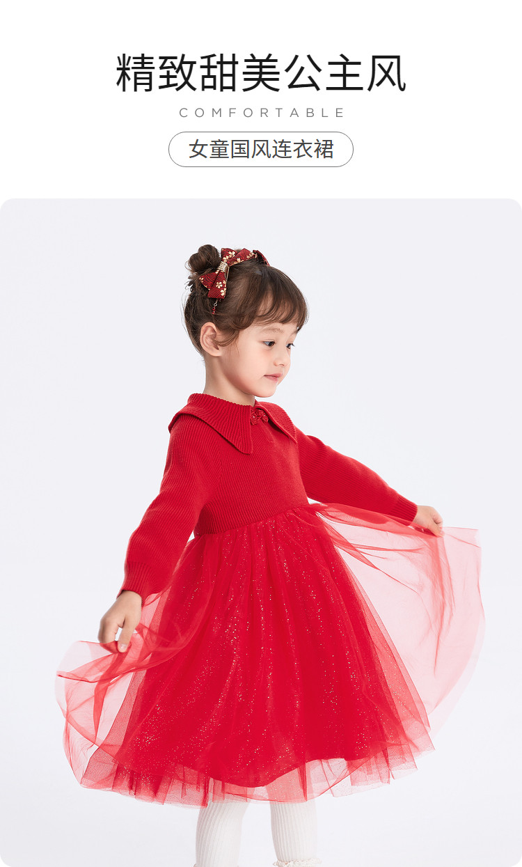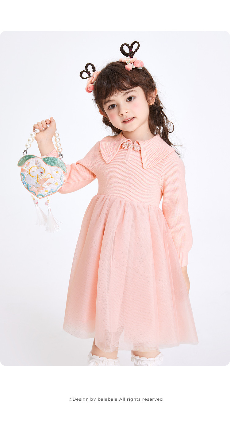 商品名称:国风翻领纱裙女童连衣裙儿童公主裙春秋款裙子宝宝网纱高级感甜美 288325