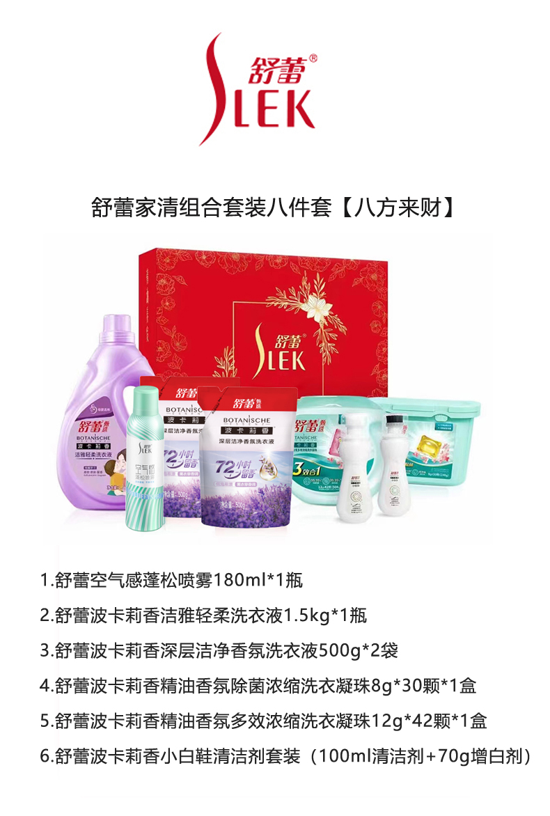 商品名称:【京东/顺丰配送】SLEK/舒蕾八方来财家清组合八件套3314g+280ml