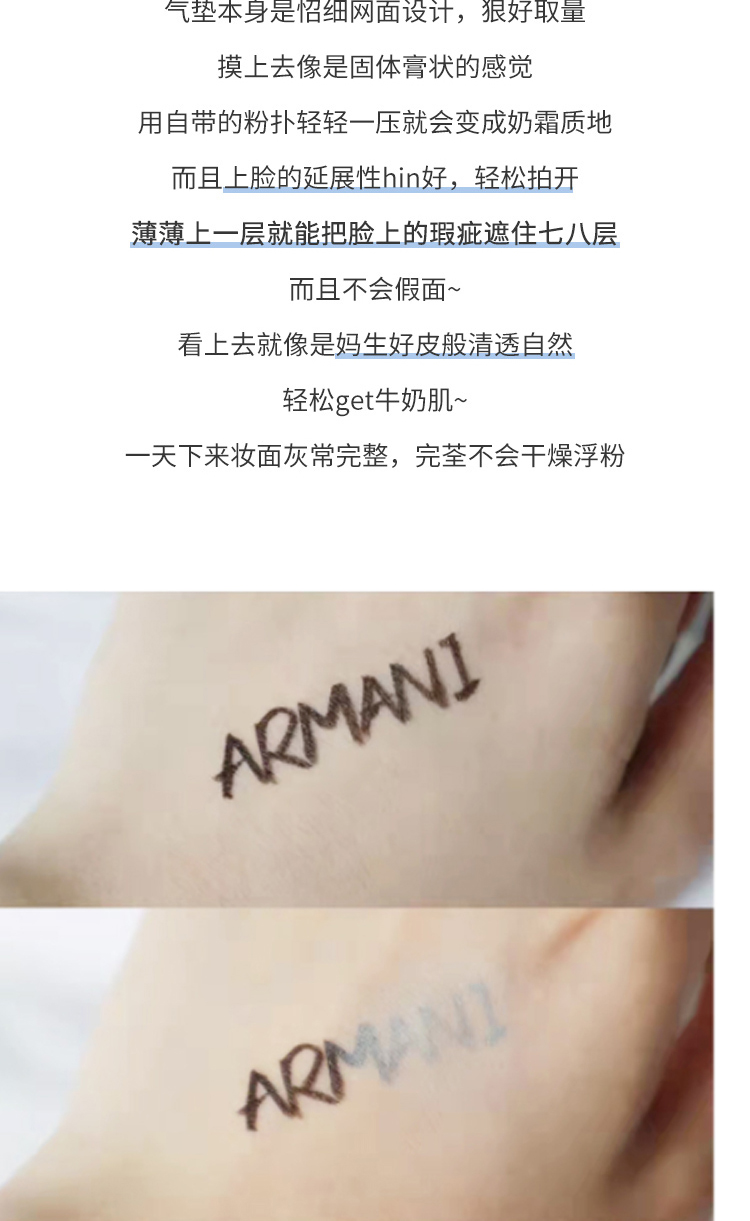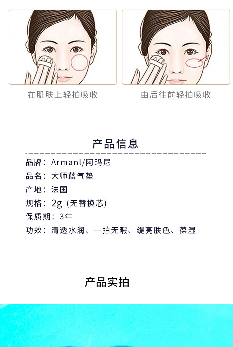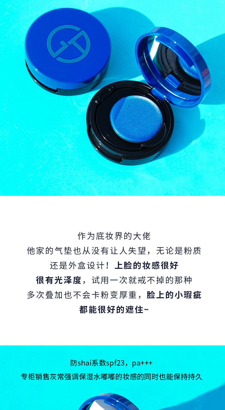 商品名称:Armani/阿玛尼 大师造型轻气垫粉底 蓝气垫 中小样1.7g 多色可选