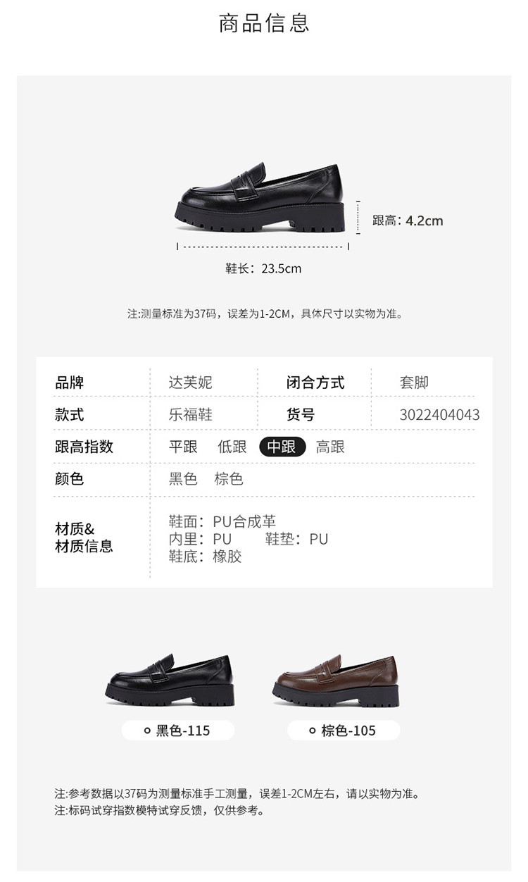 商品名称:简约时尚乐福鞋女春秋英伦圆头潮流舒适一脚蹬单鞋女 624666
