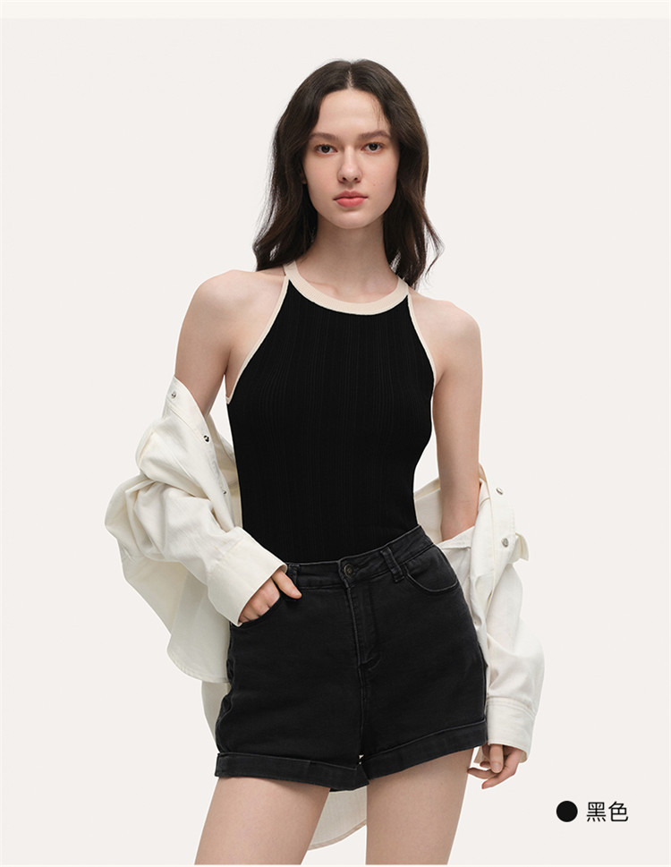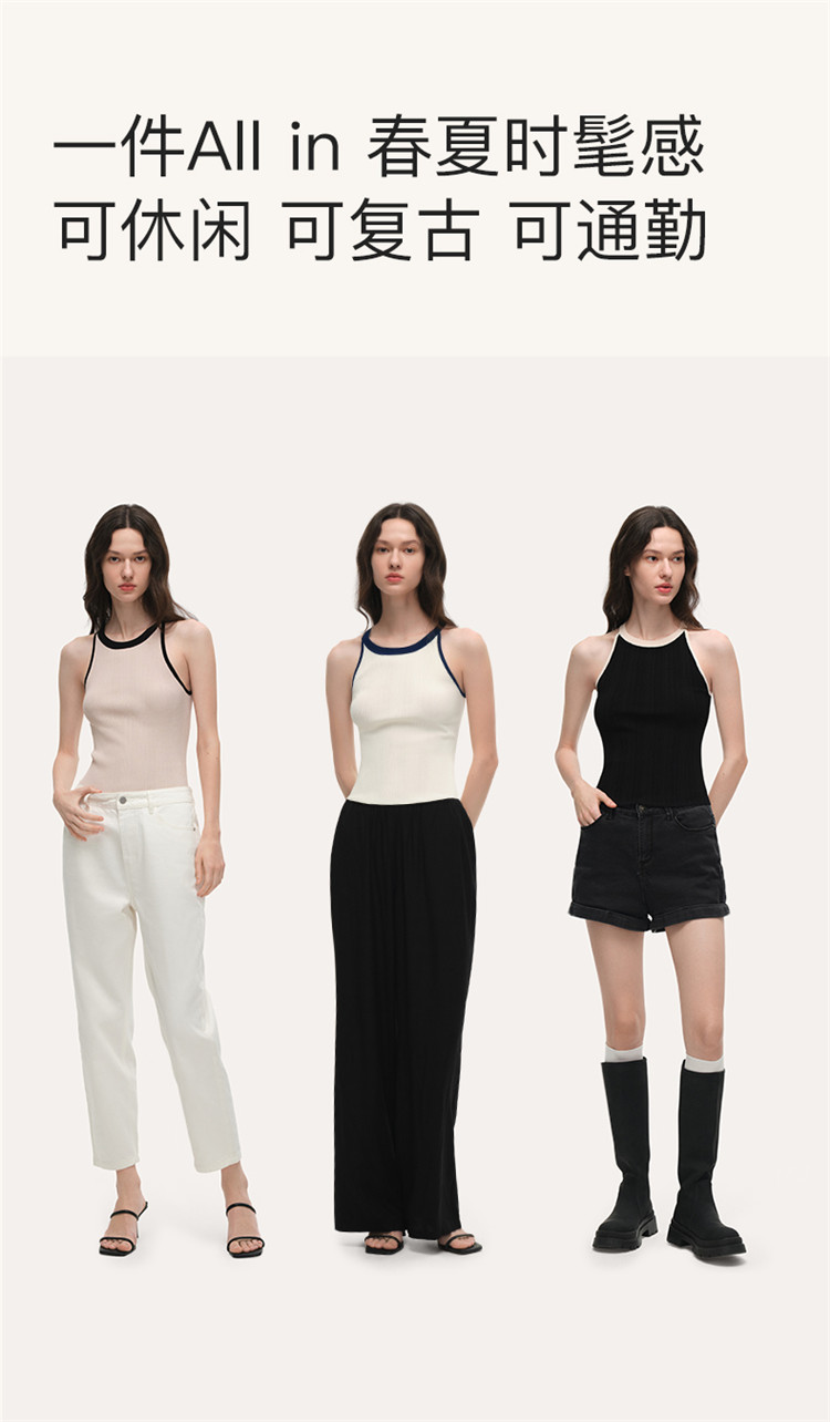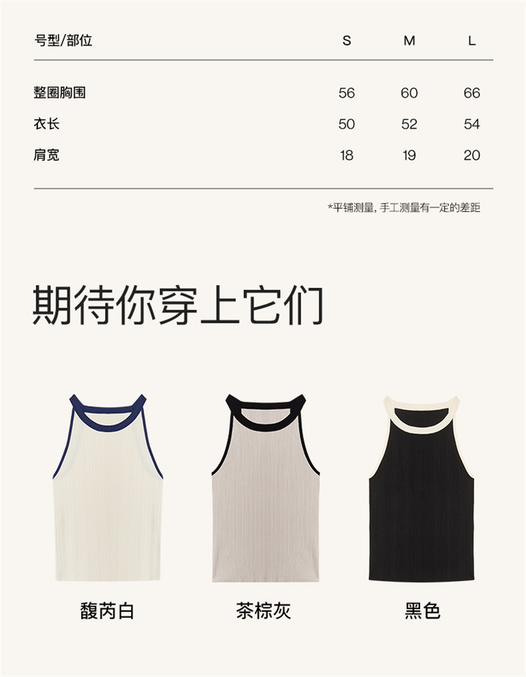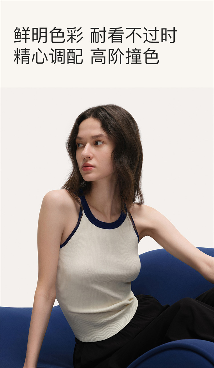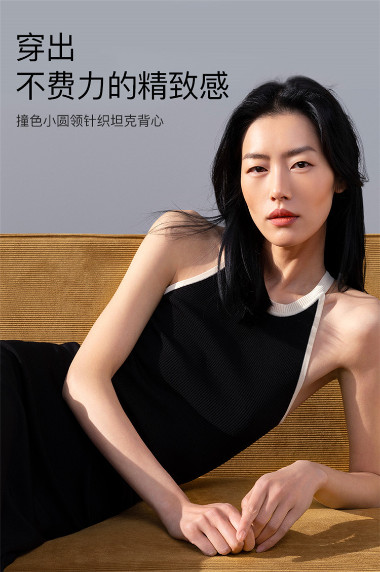 商品名称:【刘雯同款】撞色小圆领内搭外穿时尚修身针织背心夏季薄款 178112
