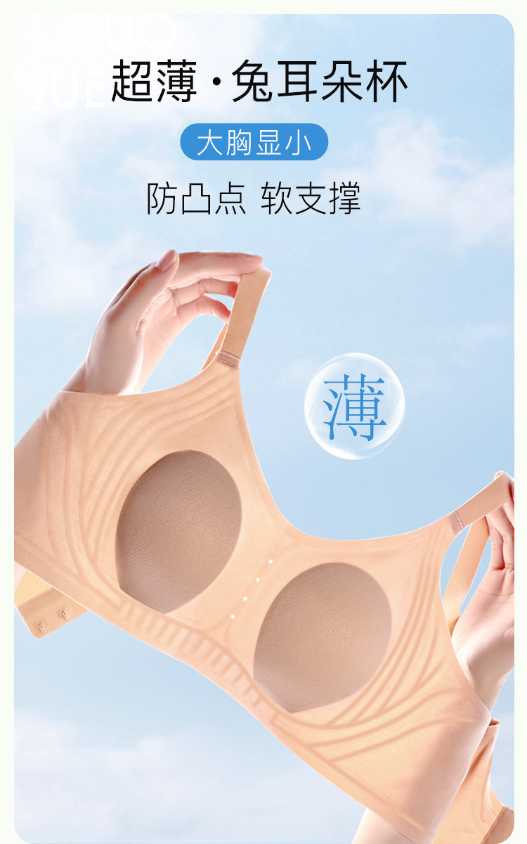 商品名称:【超薄透气兔耳朵杯】无痕裸感内衣女大胸显小提拉聚拢不空杯文胸 081566