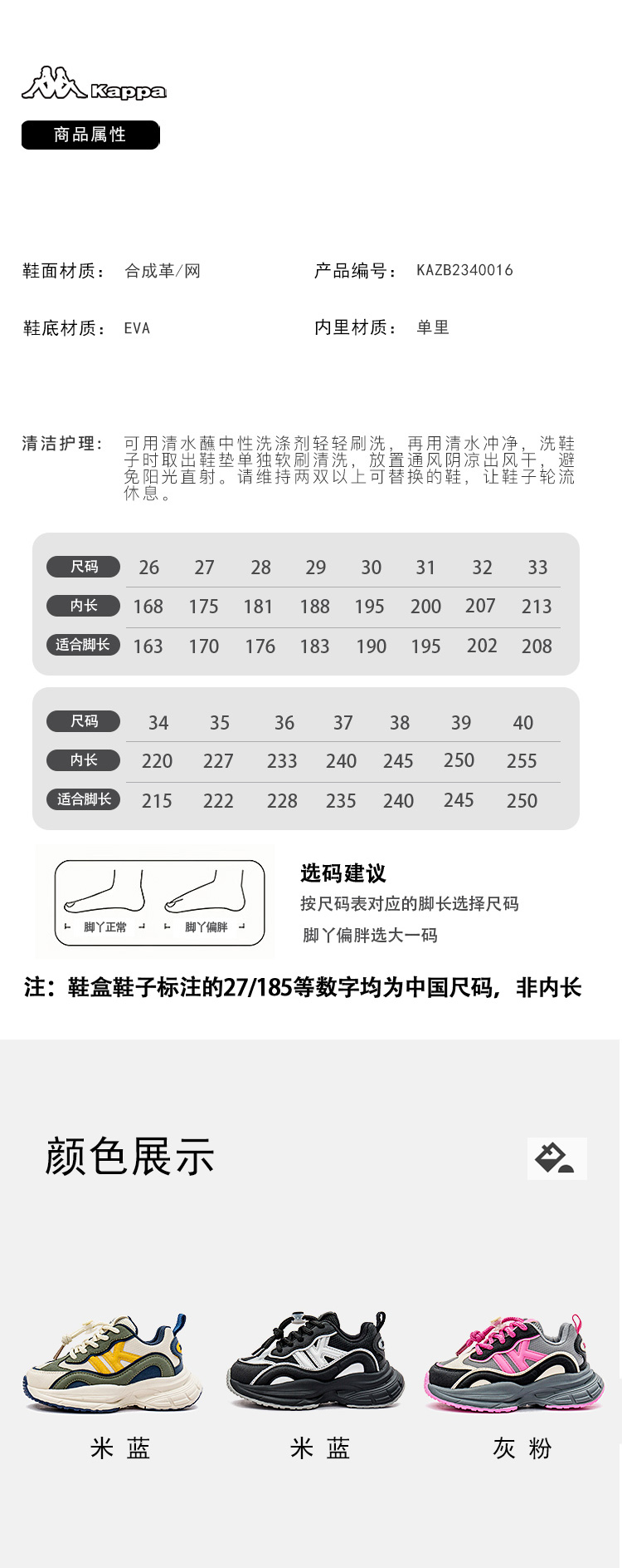 商品名称:Kappa kids卡帕儿童鞋运动女童男童2024春季中大童轻便老爹鞋透气休闲百搭鞋子