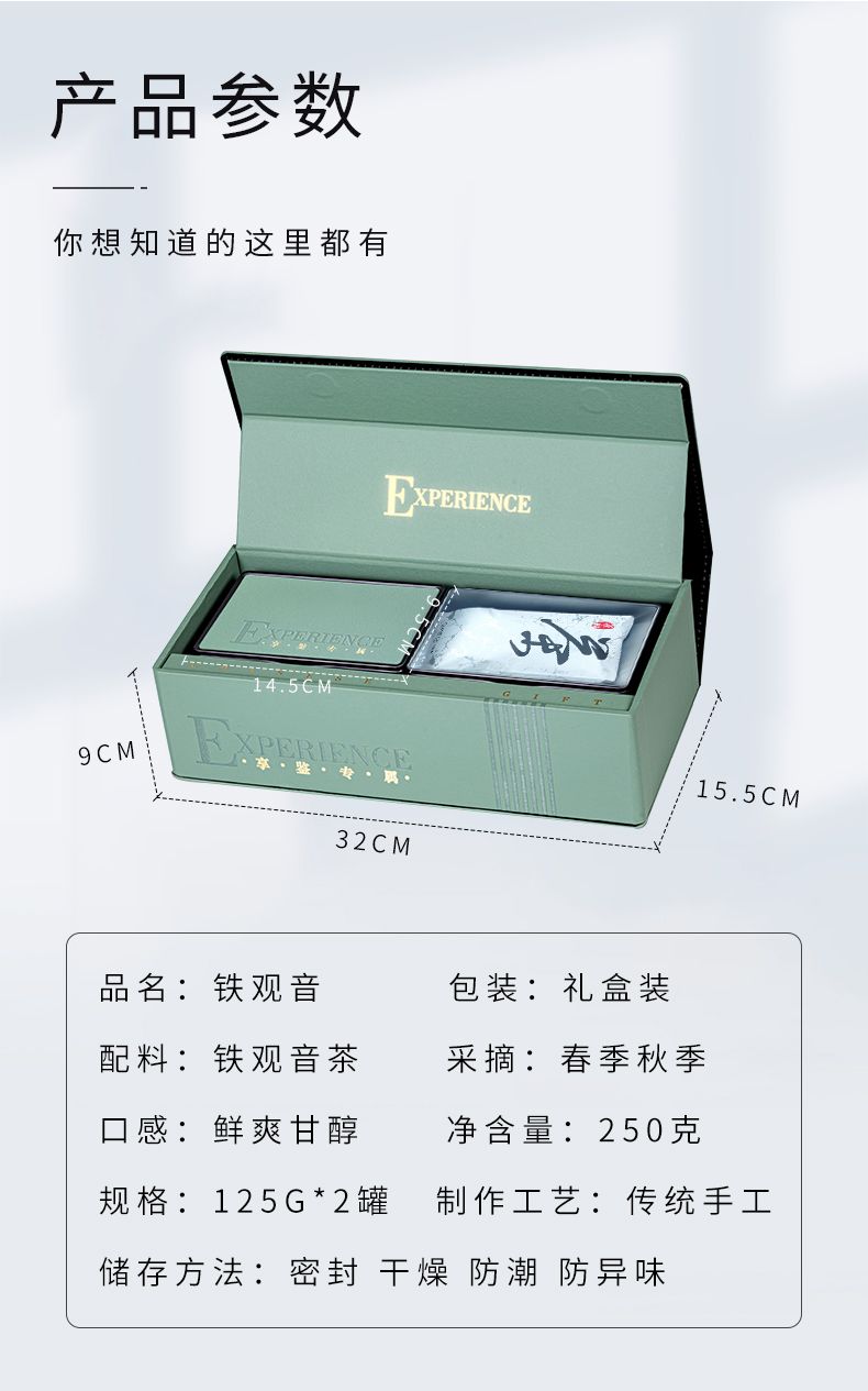 商品名称:花家盛世商务茶礼铁观音礼盒250g HJSS-SWCL-TGY-250