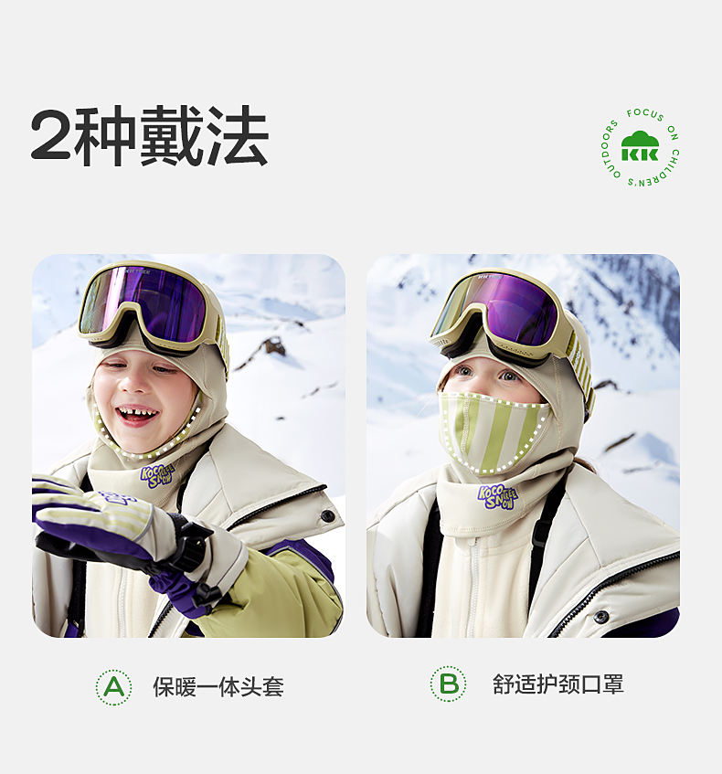 【直供】KK树儿童滑雪头套成人冬季防风保暖护脸户外骑行面罩A类小暖皮滑雪头套