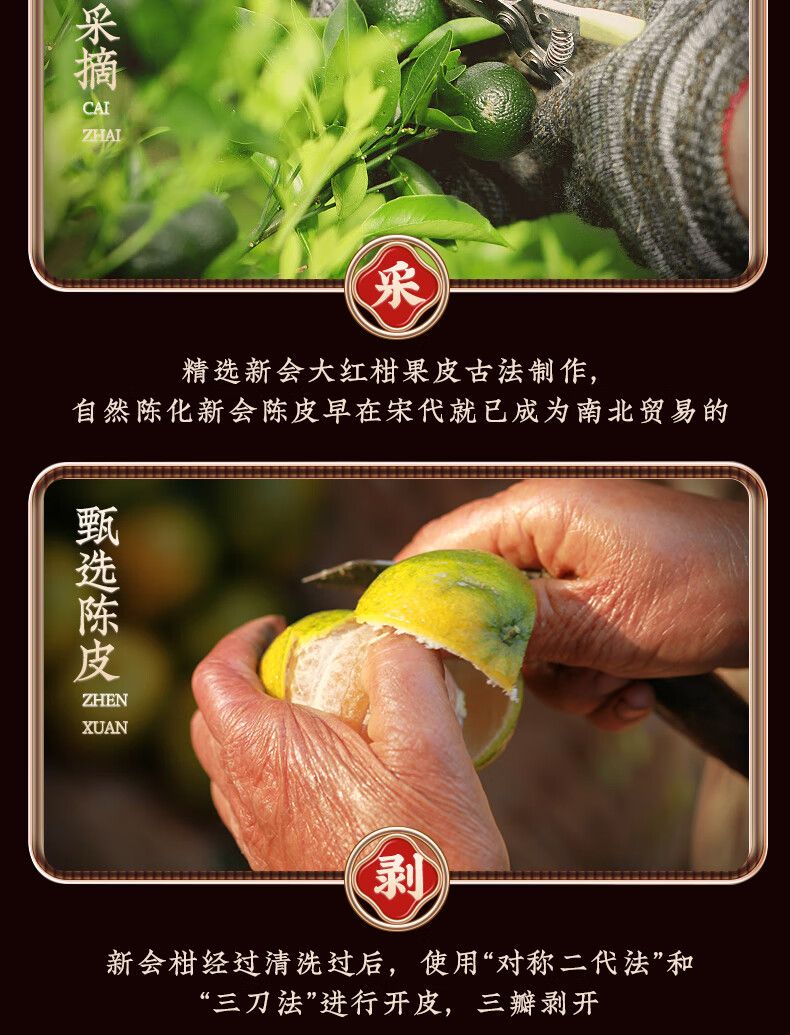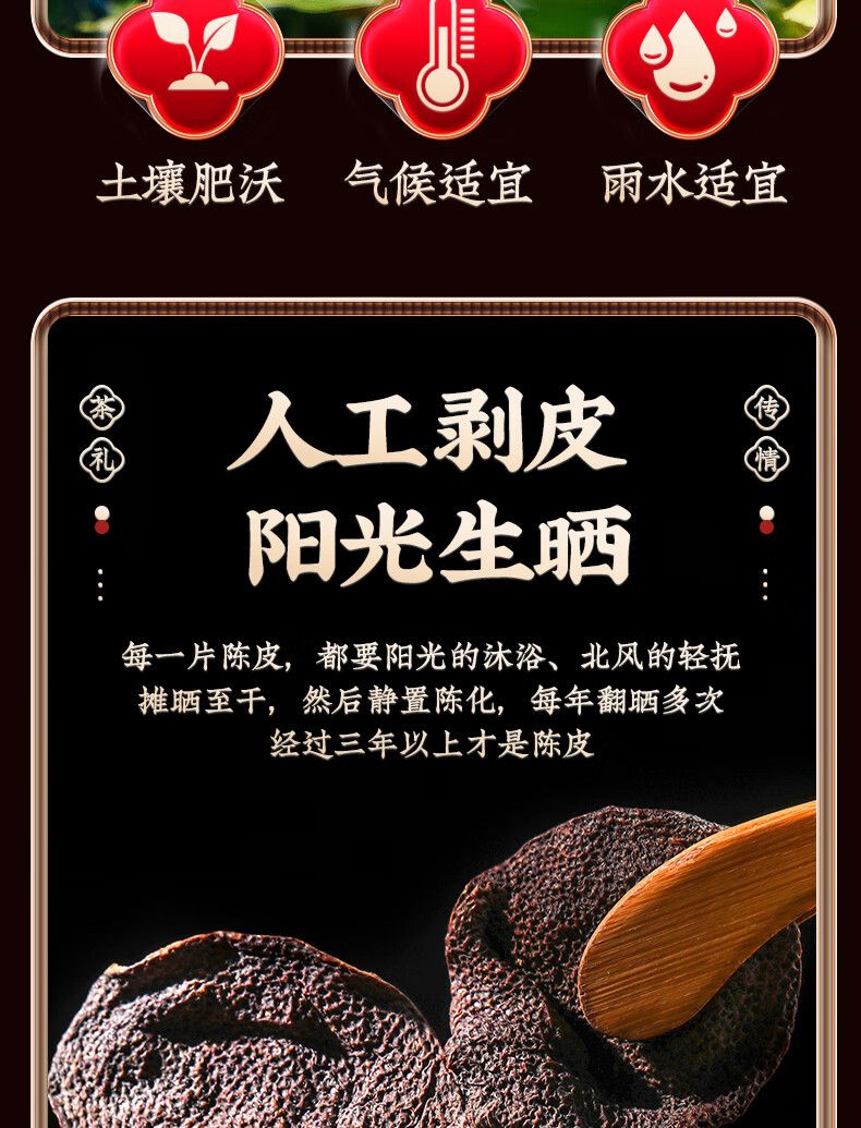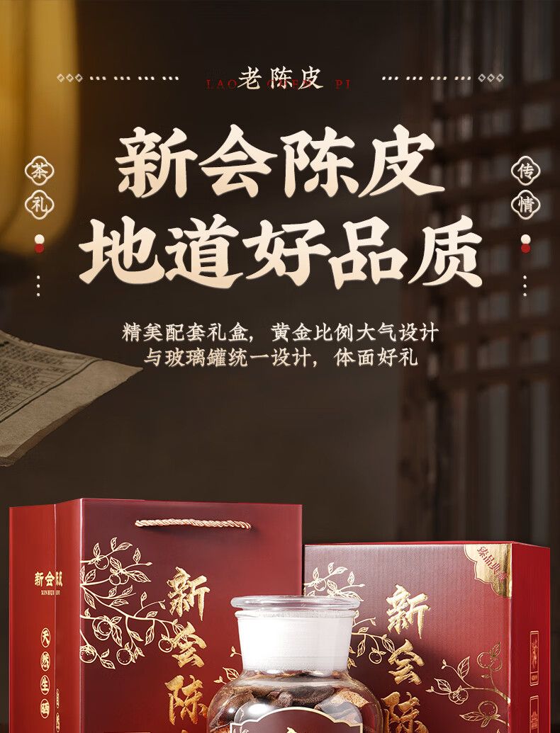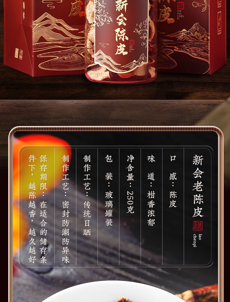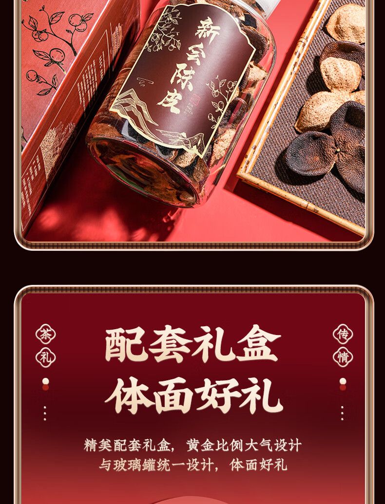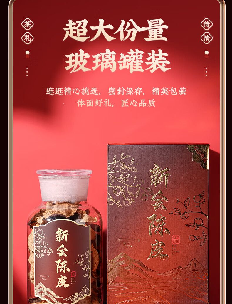 商品名称:天洲溪陈皮广东新会梅江 二十年干仓老陈皮玻璃瓶 年货节茶叶250g礼盒装