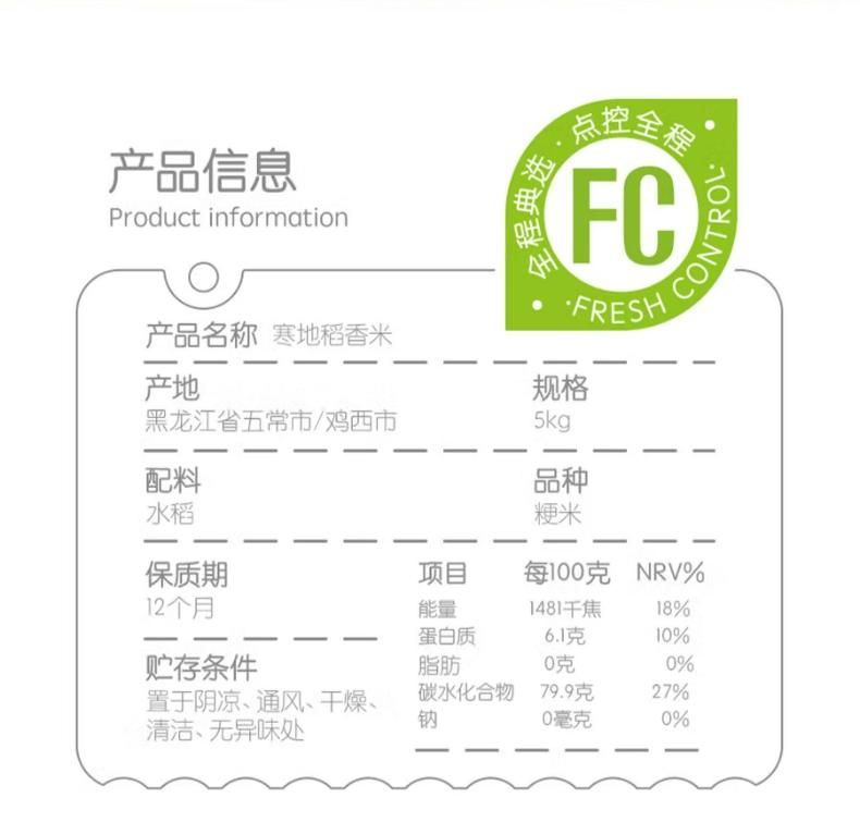 商品名称:北大荒典选寒地稻香米5kg 东北大米 当季新米
