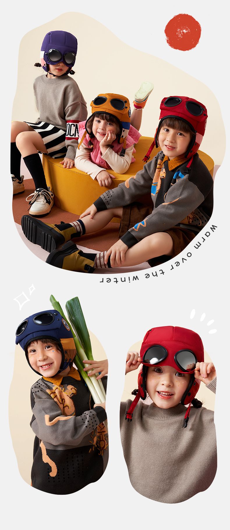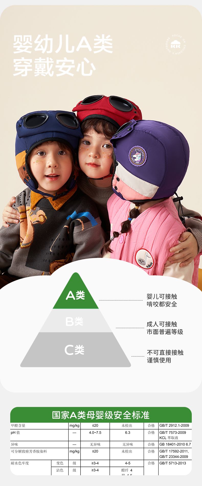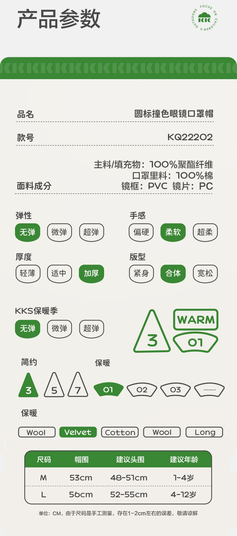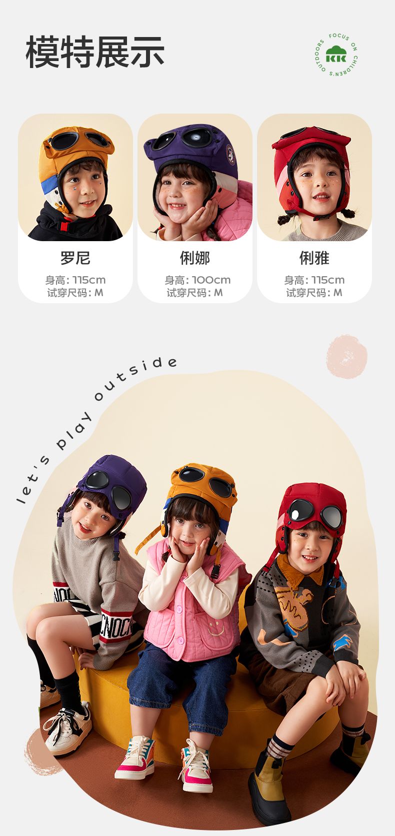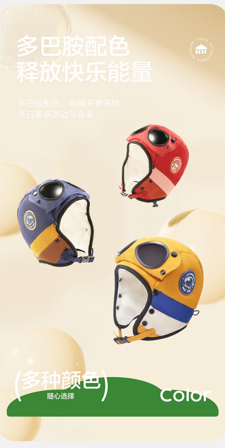 商品名称:【直供】KK树飞行员儿童雷锋帽防风护耳帽秋冬季加绒帽子圆标撞色眼镜口罩帽