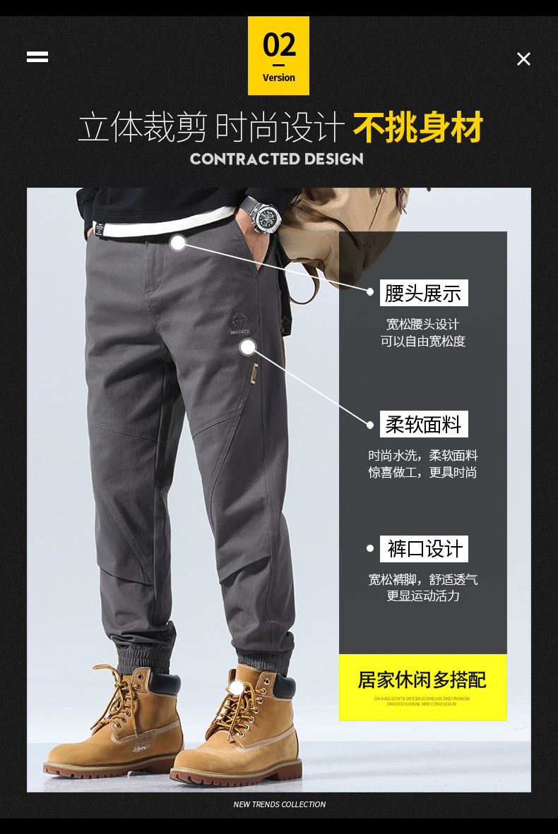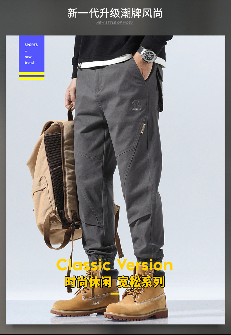 商品名称:曼西尔奴男士松紧棉质潮流时尚百搭耐磨耐穿束脚休闲裤225221TM