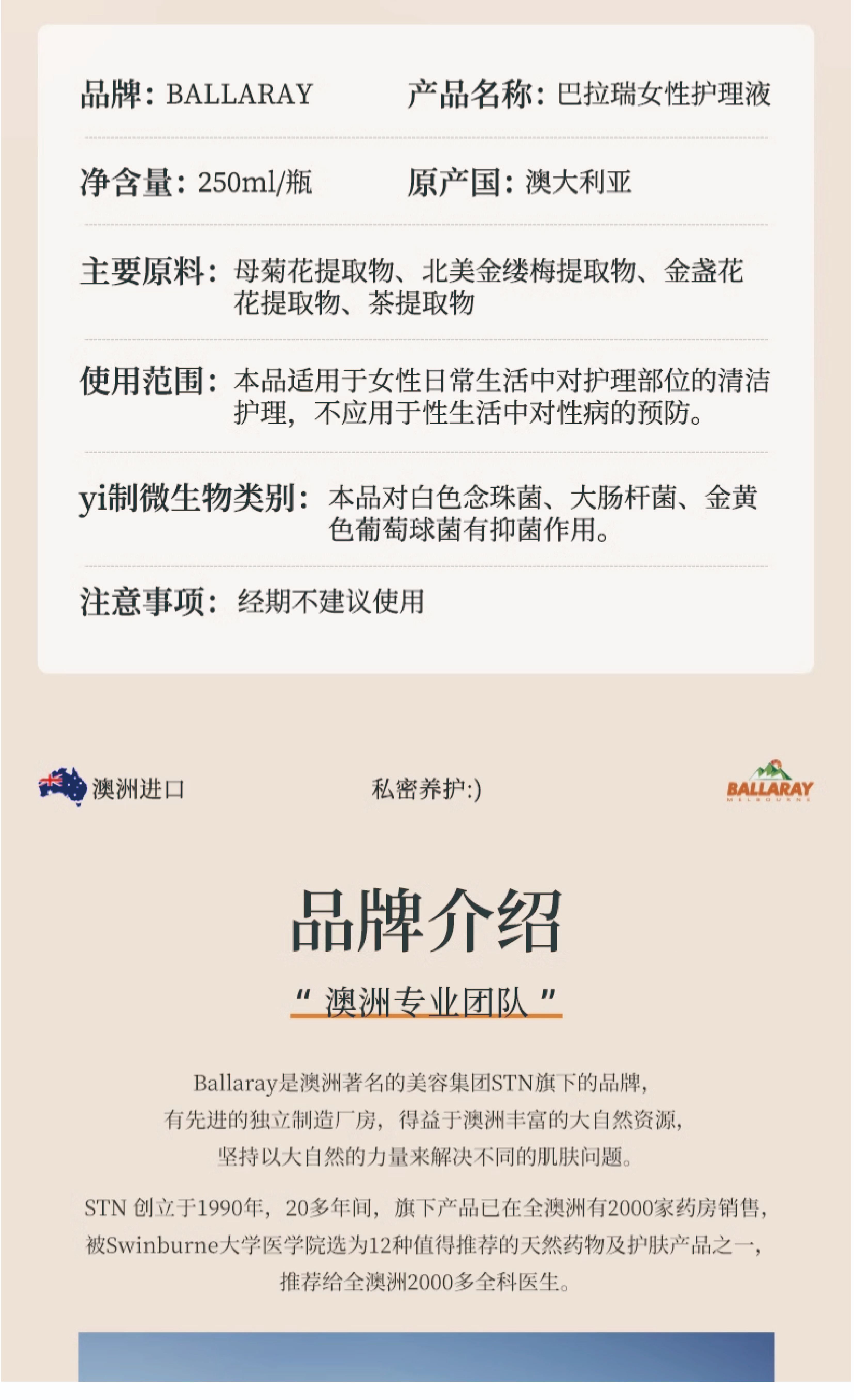商品名称:BALLARAY/巴拉瑞 女性私处洗护液 250ml*2瓶
