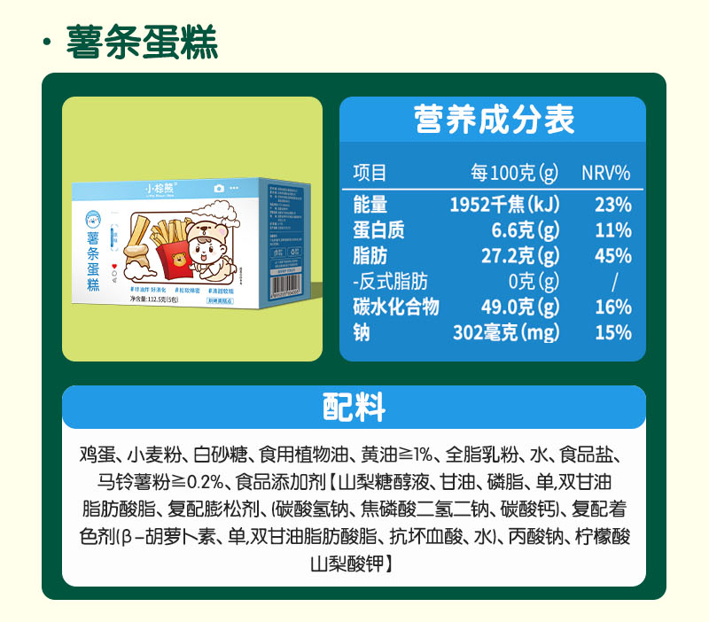 商品名称:小棕熊精装大盒装薯条蛋糕 皇冠蛋糕 熊爪蛋糕零食儿童