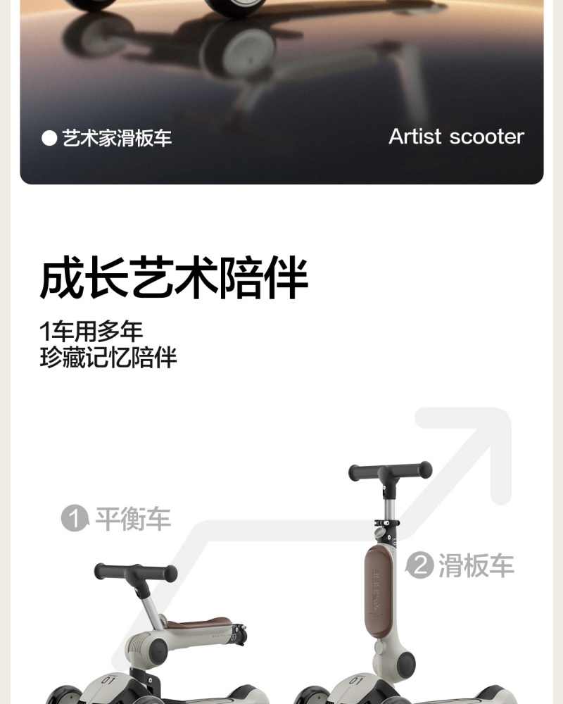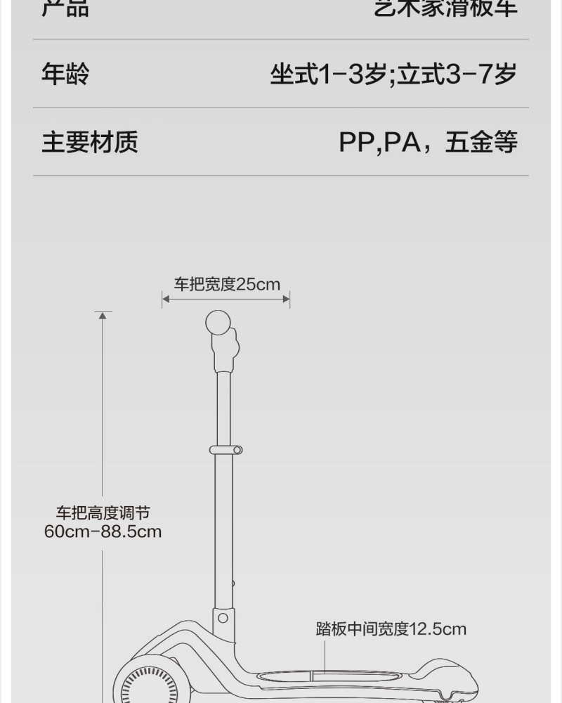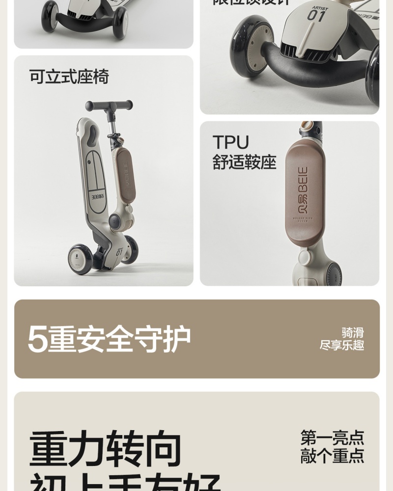 商品名称:贝易艺术家滑板车三合一1到3岁6岁可折叠可座宝宝滑滑溜娃神器