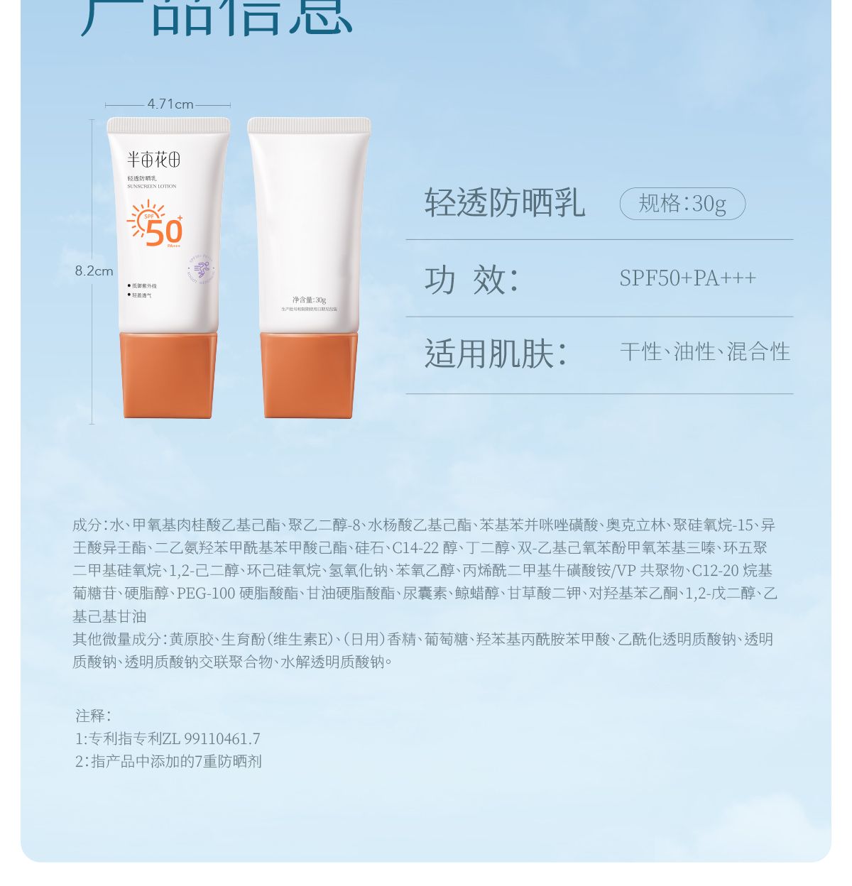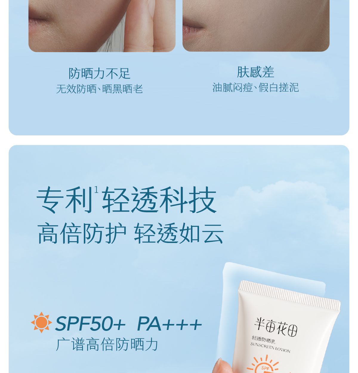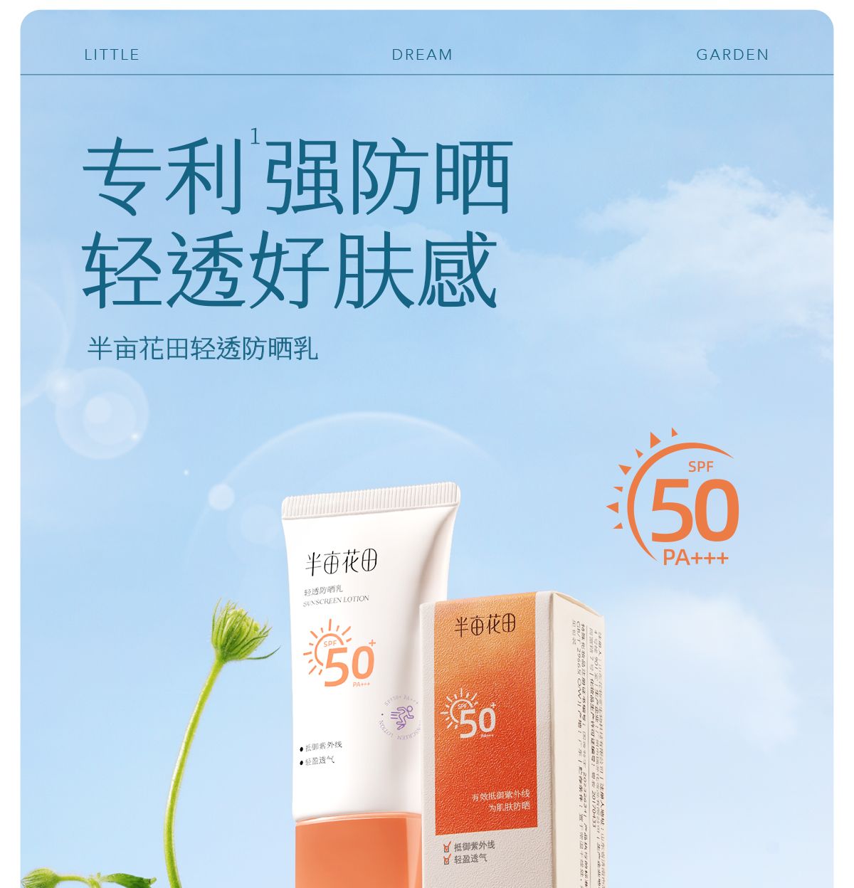 商品名称:半亩花田 轻透防晒霜30g(版本A)
