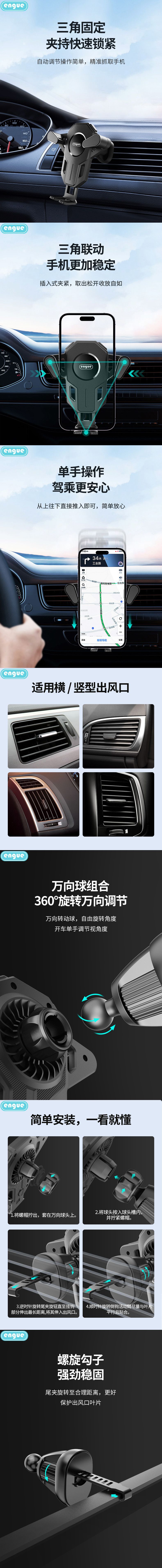 商品名称:engue恩谷 车载出风口重力手机支架黑色EG-C03