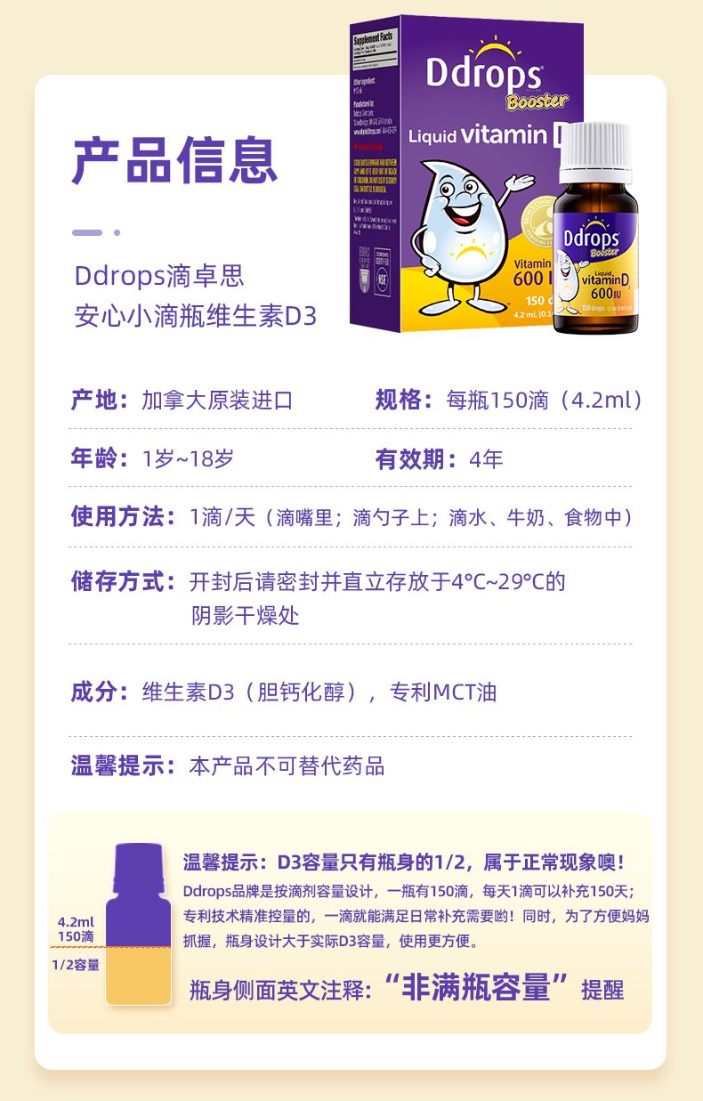 滴卓思Ddrops 维生素D3滴剂150滴600IU(4.2ml)