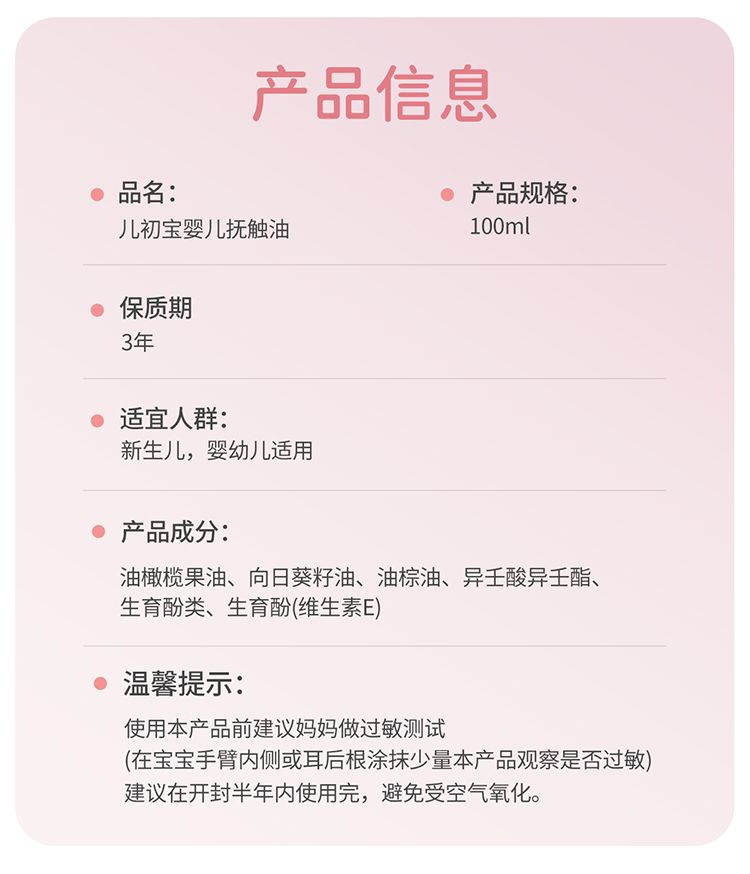 商品名称:BABETRUE儿初宝 婴幼儿舒缓抚触油(100ml)