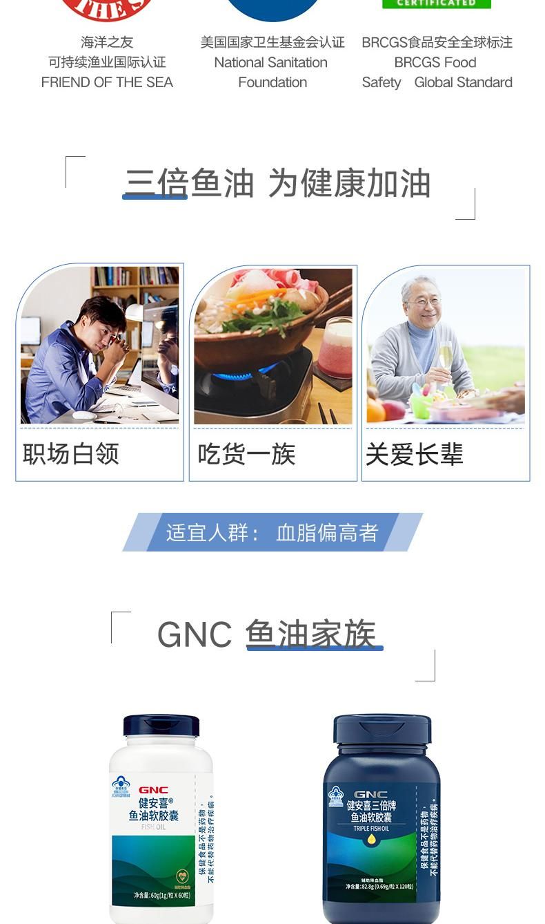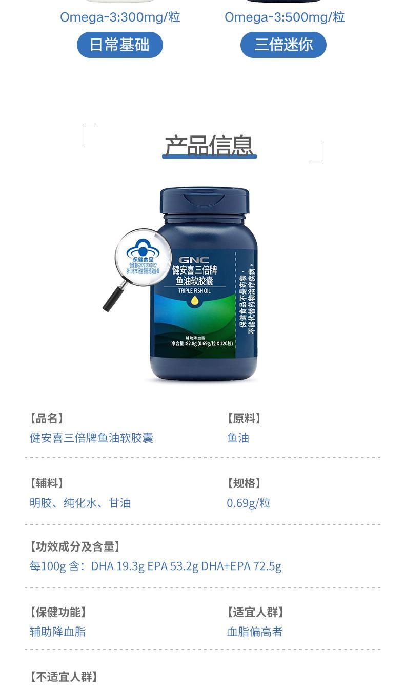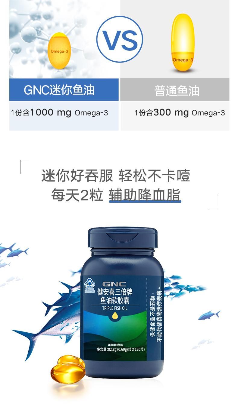 商品名称:GNC/健安喜 三倍牌鱼油软胶囊 120粒