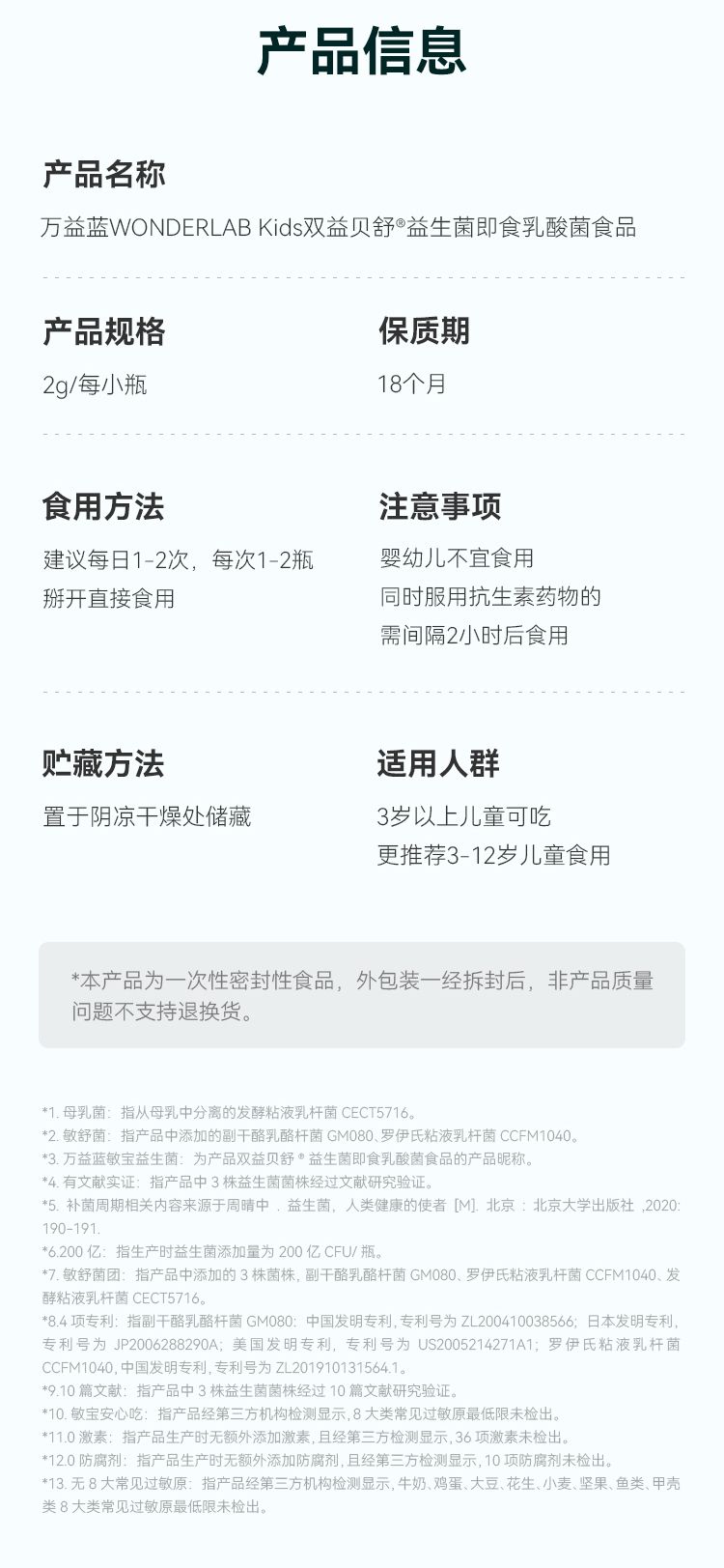 商品名称:万益蓝WonderLab Kids_双益贝舒益生菌即食乳酸菌食品_10瓶装