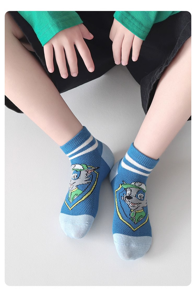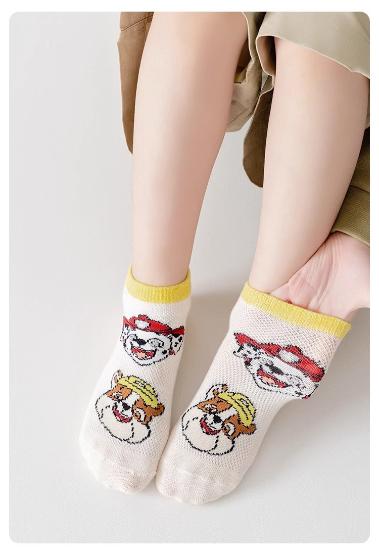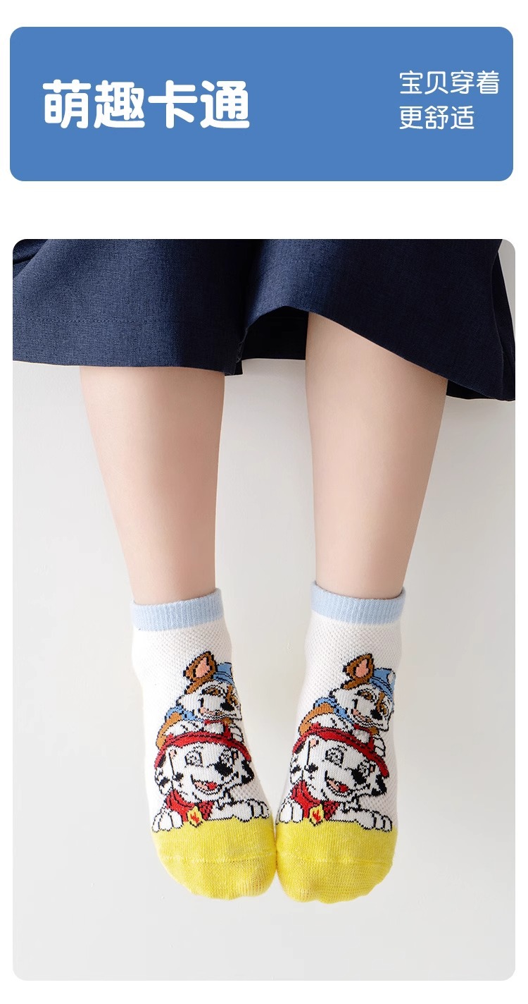哆宝时代儿童袜子纯棉春夏薄款网眼短袜汪汪队卡通可爱宝男童袜子【5双包邮】