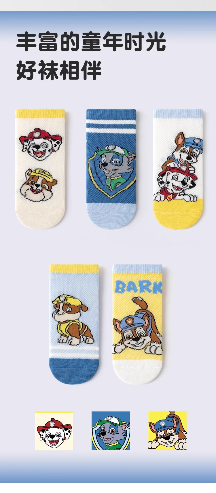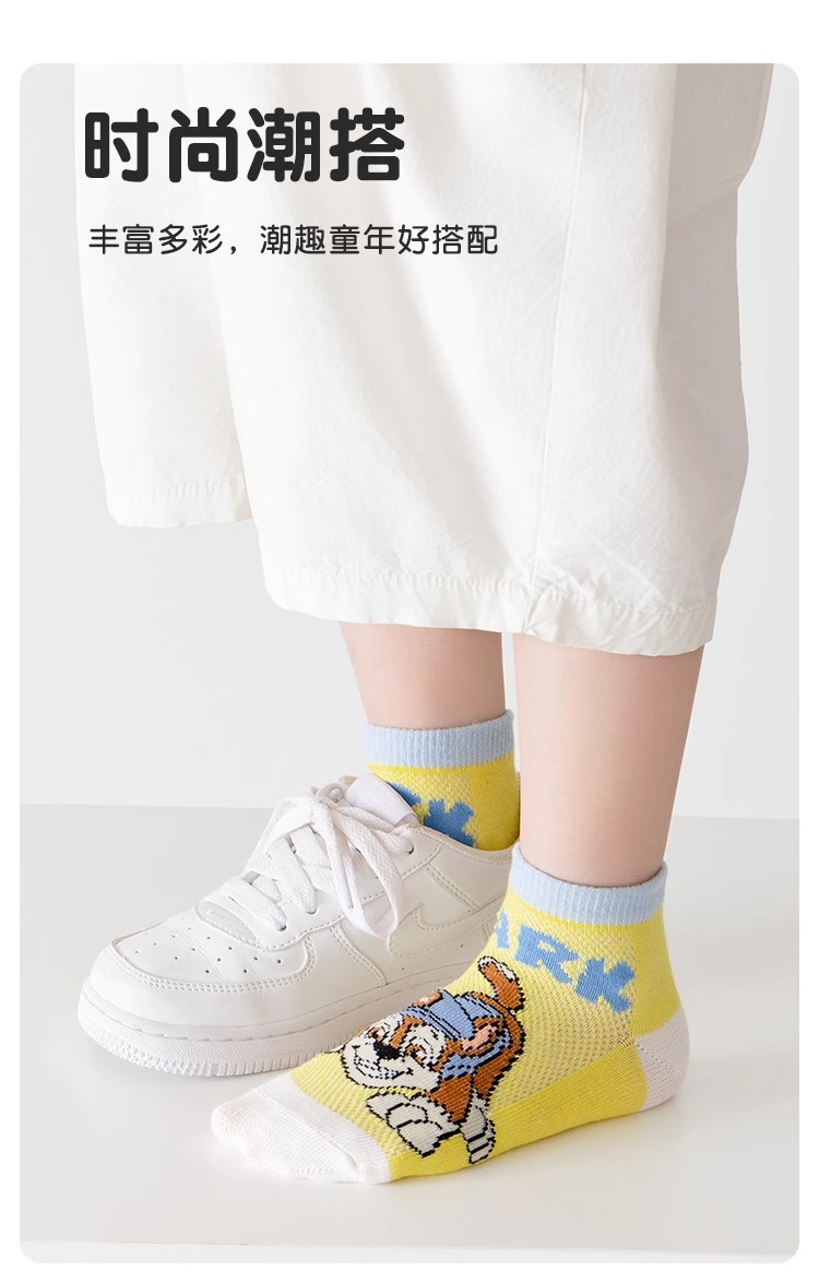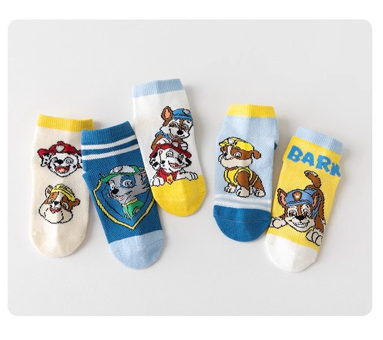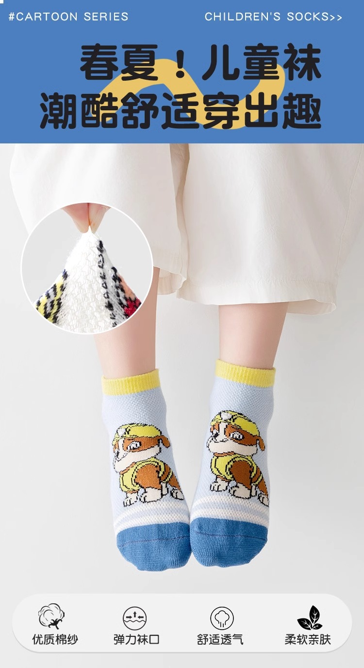 哆宝时代儿童袜子纯棉春夏薄款网眼短袜汪汪队卡通可爱宝男童袜子【5双包邮】