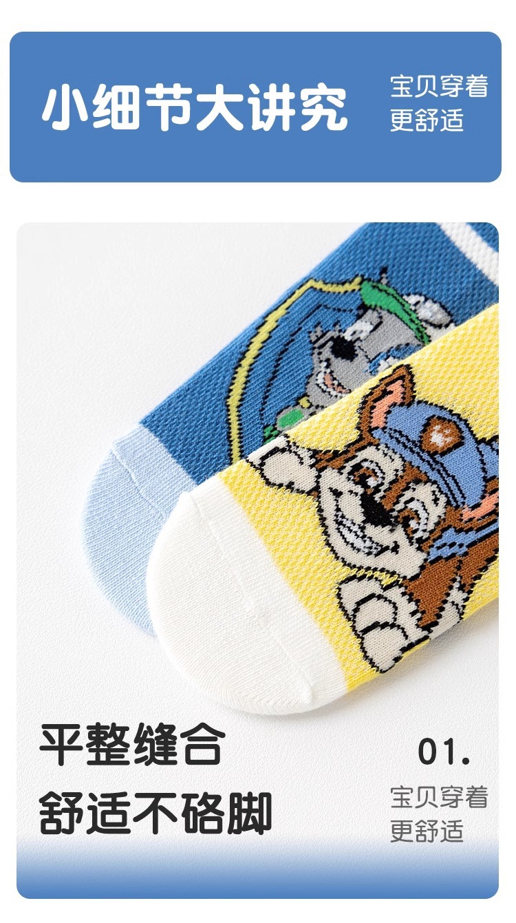 商品名称:哆宝时代儿童袜子纯棉春夏薄款网眼短袜汪汪队卡通可爱宝男童袜子【5双包邮】