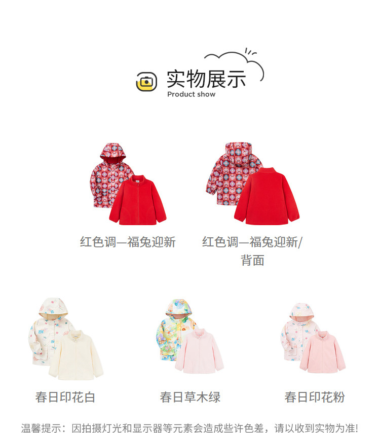 商品名称:三防一衣三穿外套儿童春秋款两件套女童宝宝摇粒绒出游季户外露营 139973