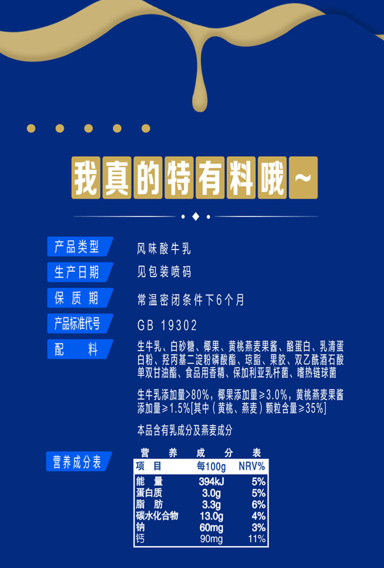 商品名称:纯甄黄桃燕麦果粒风味酸奶康美笑脸包装 200gx10包整箱食品