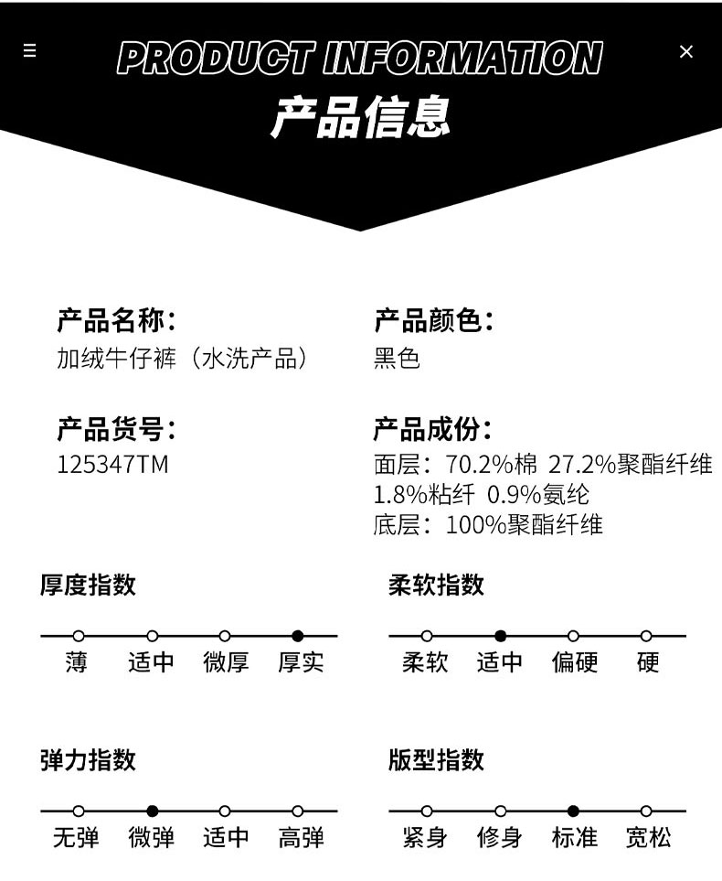 商品名称:曼西尔奴男士潮流冬季加绒加厚商务休闲百搭保暖直筒牛仔裤125347TM