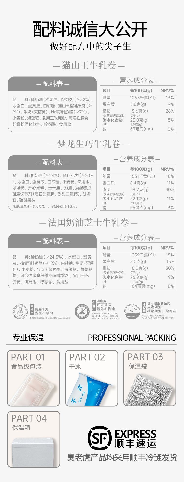 牛乳卷家庭分享礼包奶油芝士260g/盒+猫山王260g/盒+梦龙生巧338g/盒