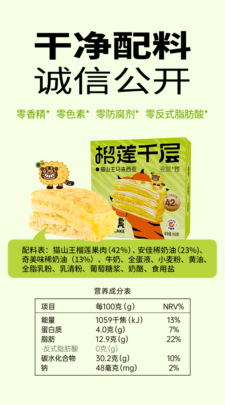 商品名称:臭老虎 0添加猫山王榴莲千层