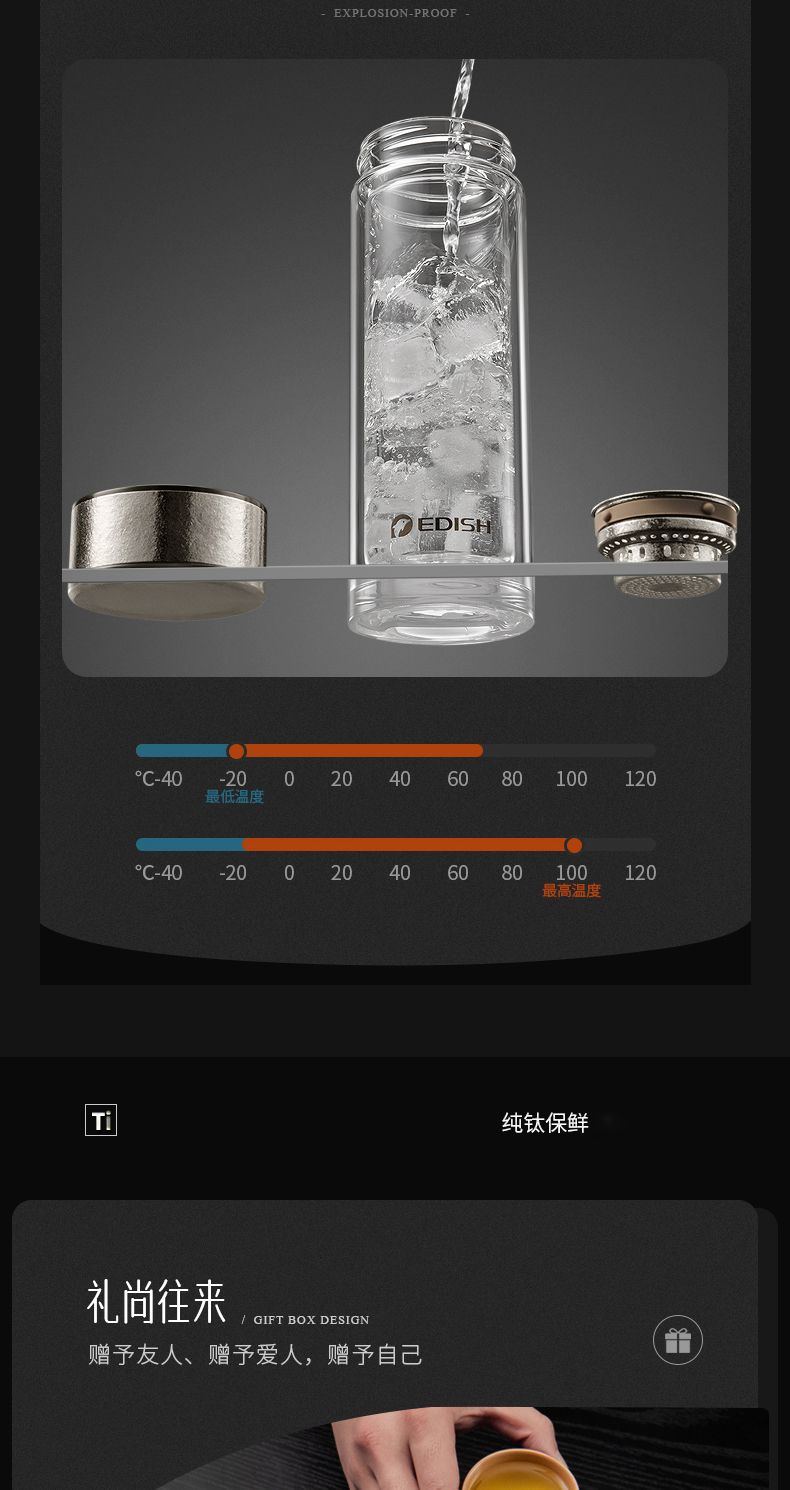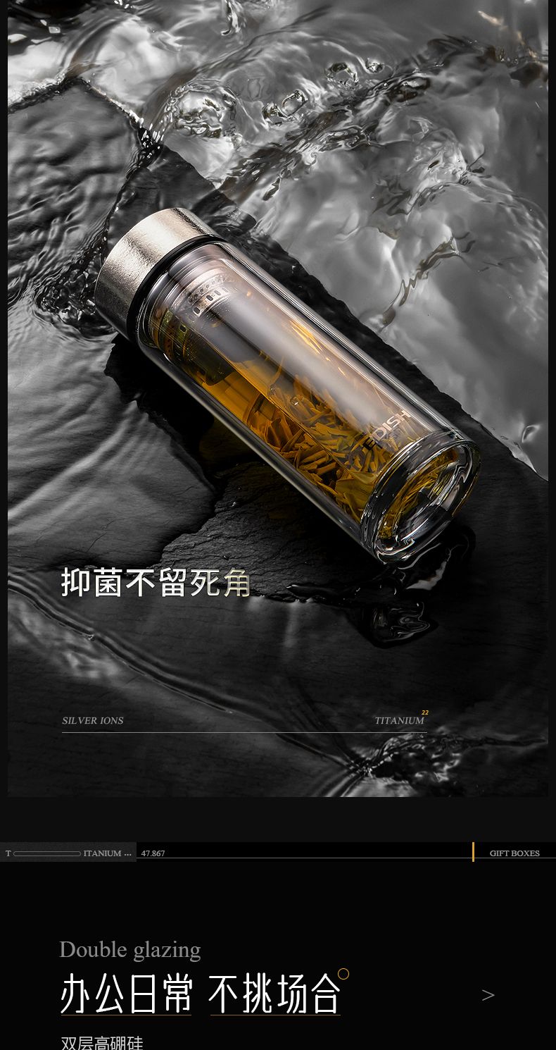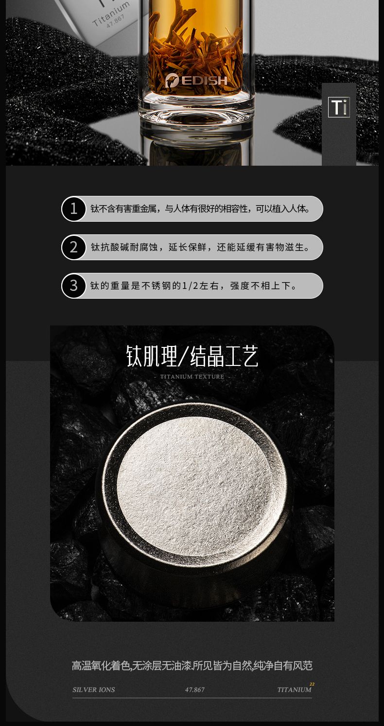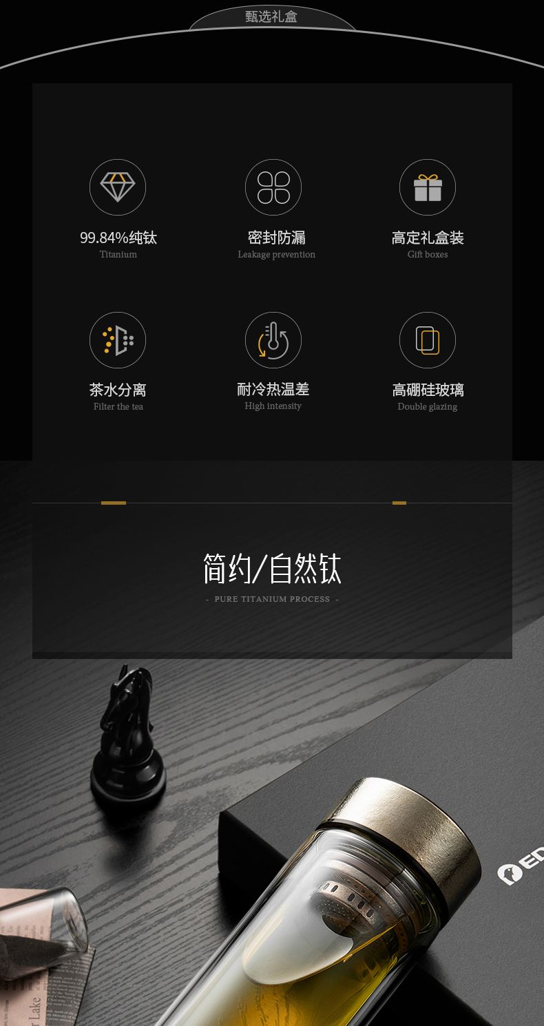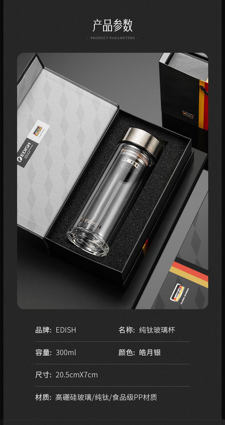 商品名称:壹滴水 纯钛钛品茶盖茶网玻璃杯皓月银