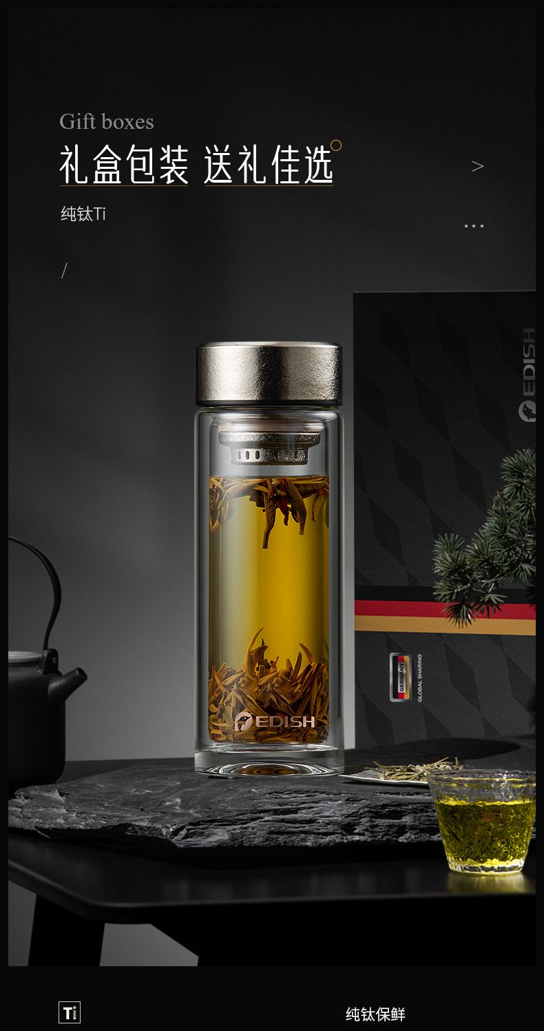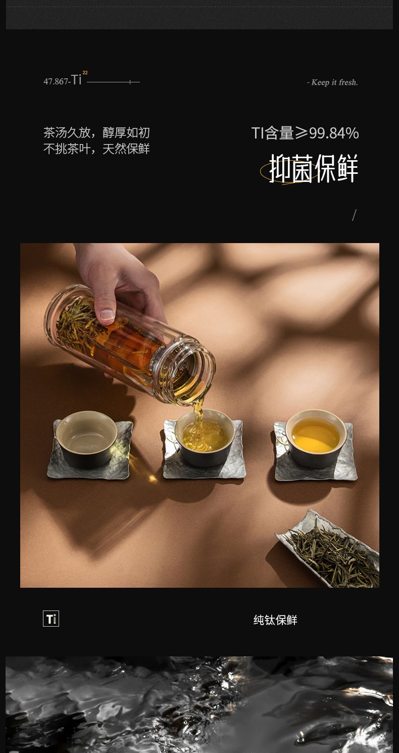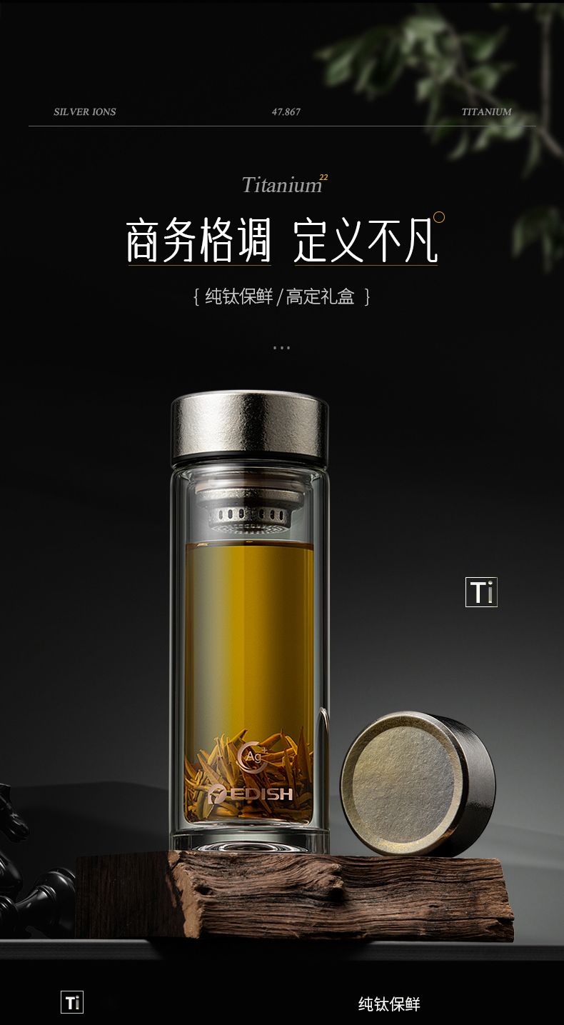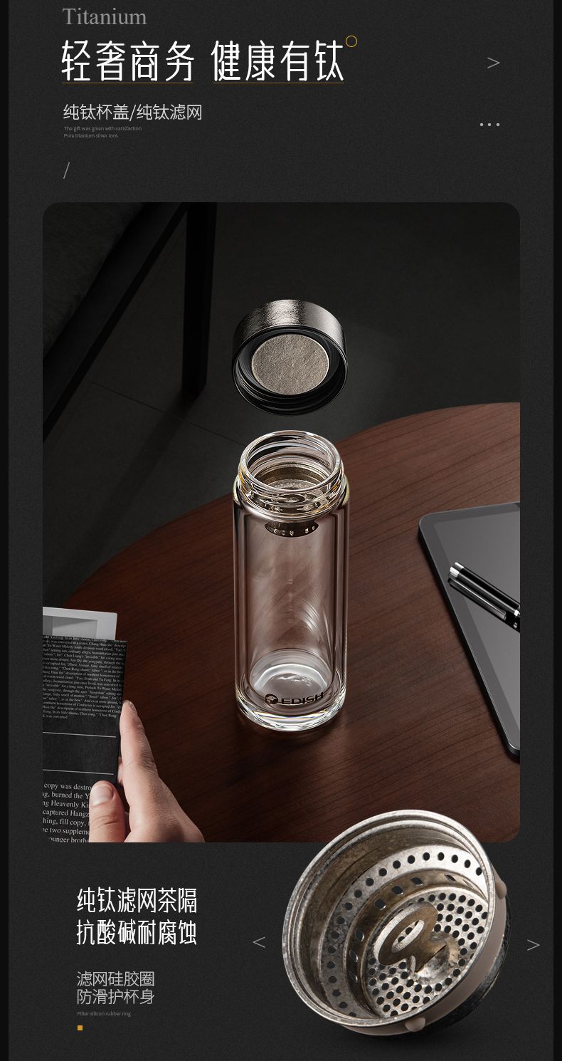 壹滴水 纯钛钛品茶盖茶网玻璃杯皓月银