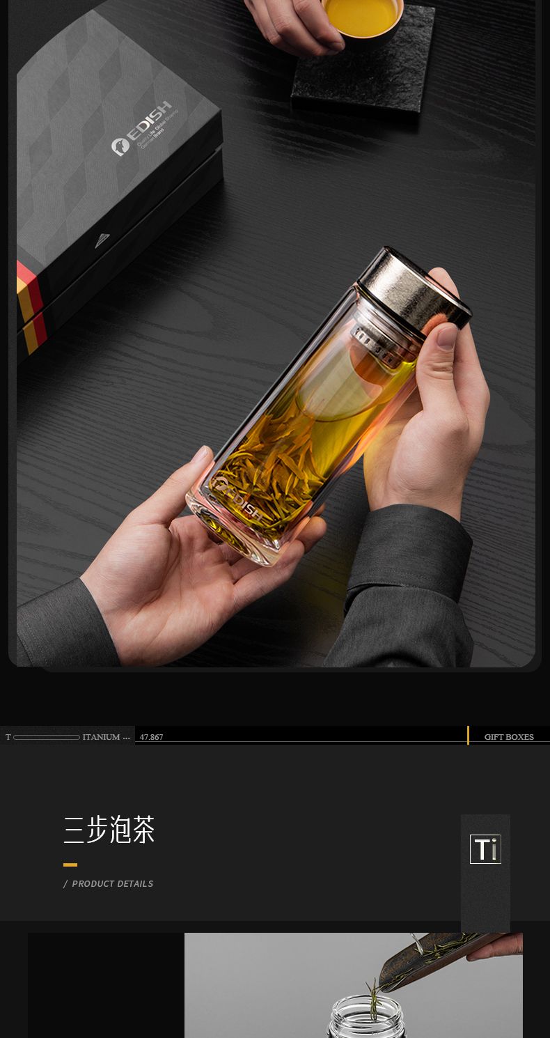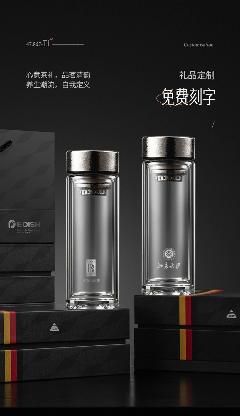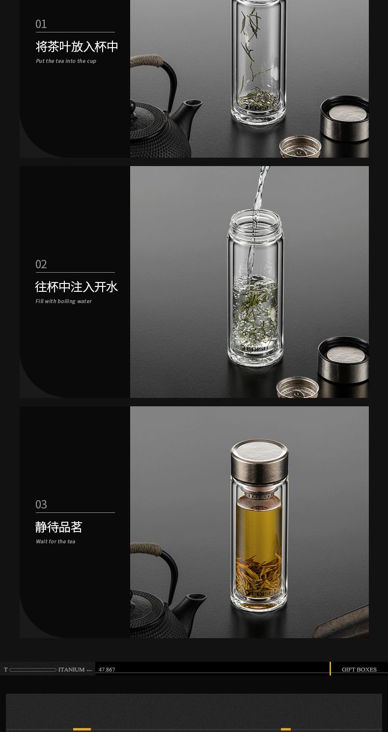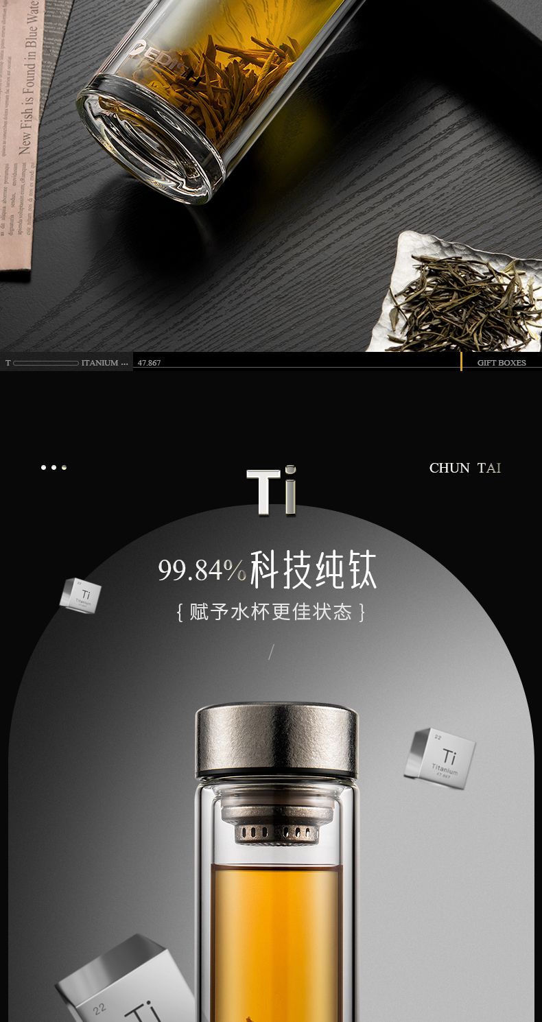 壹滴水 纯钛钛品茶盖茶网玻璃杯皓月银