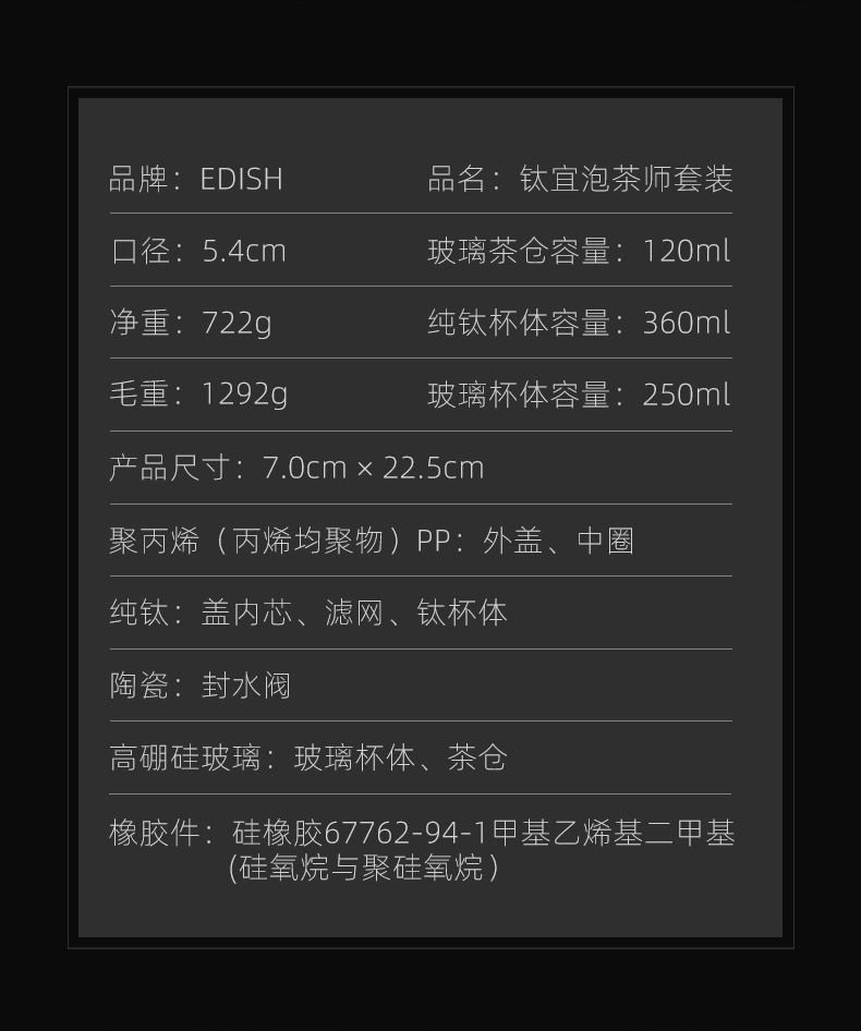商品名称:壹滴水 纯钛钛宜泡茶师套装