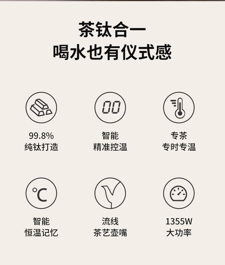 商品名称:壹滴水 纯钛智能控温电热水壶钛灰色