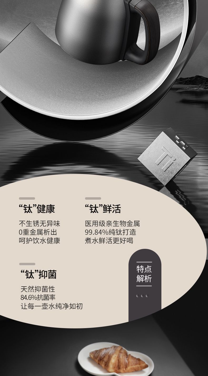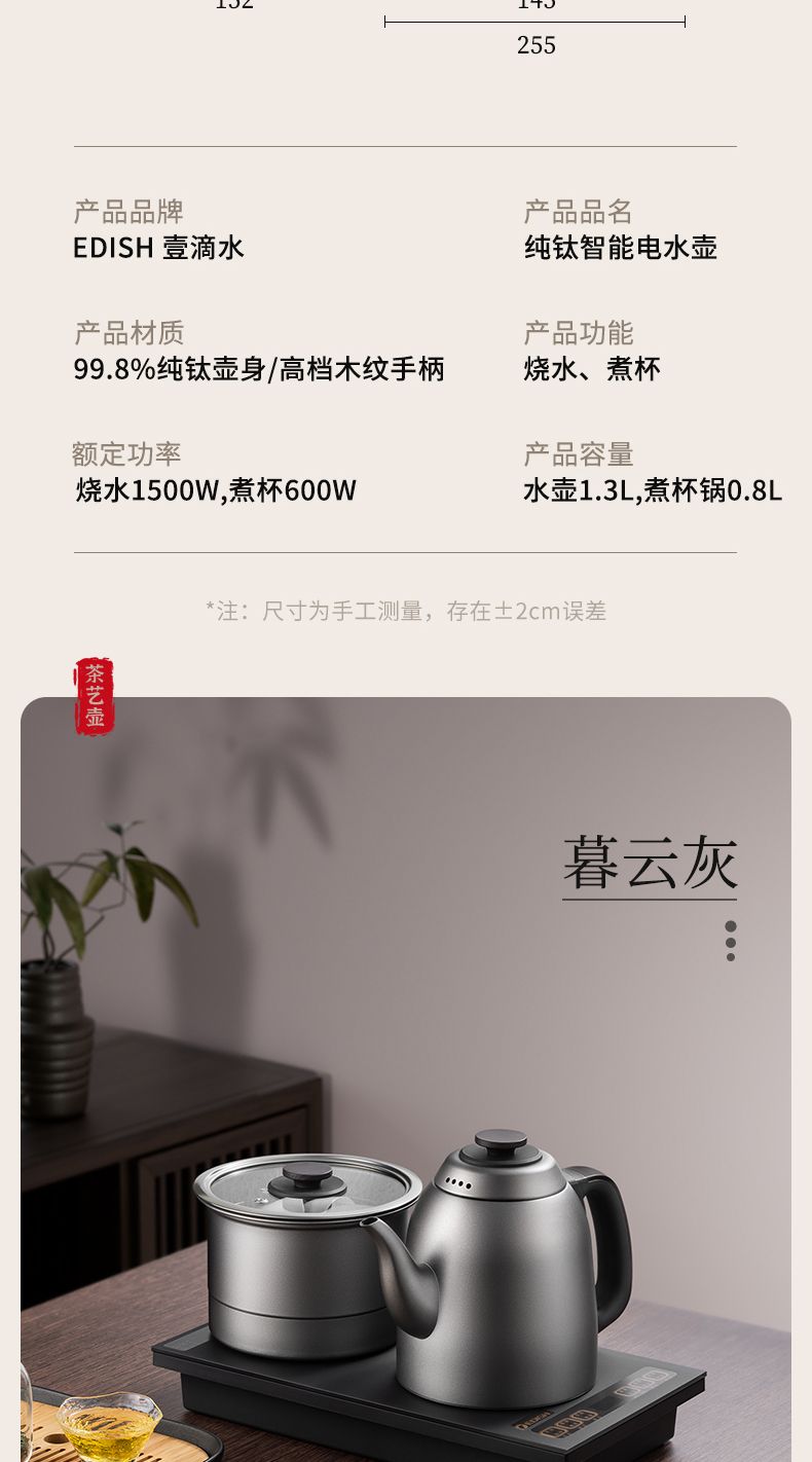 商品名称:壹滴水 纯钛烧茶套装电水壶钛灰色