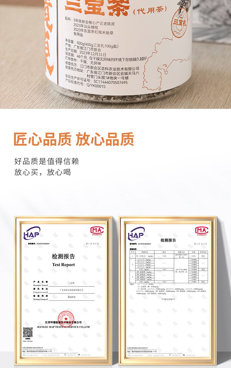 商品名称:茶秘密 三宝茶(分享装)500g(400g三宝扎+ 100g盐)