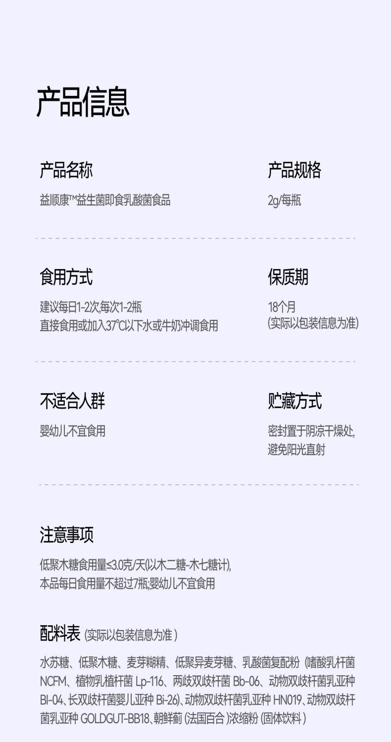 商品名称:万益蓝WonderLab 益顺康™益生菌即食乳酸菌食品_2g瓶*50瓶/盒