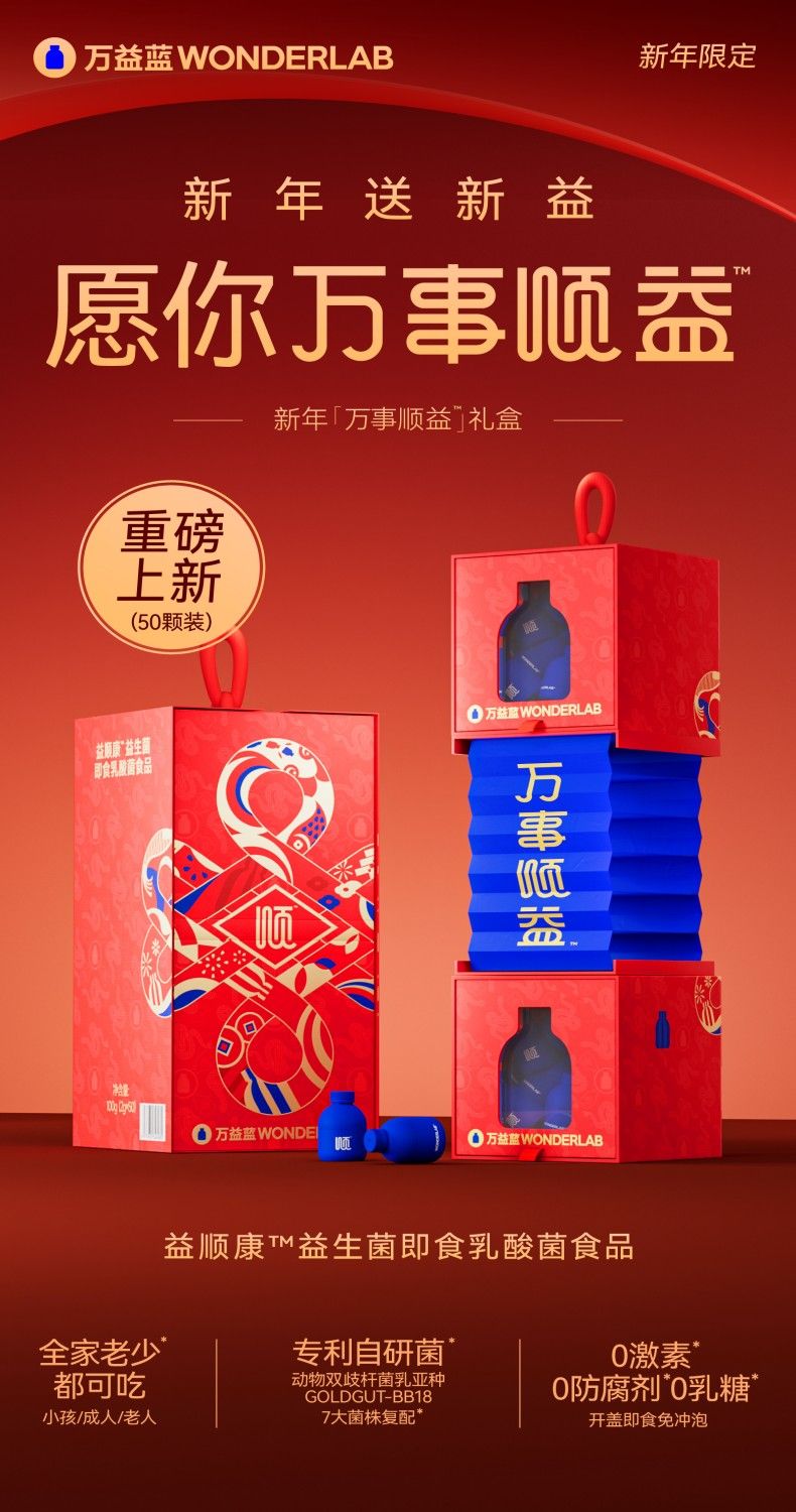 万益蓝WonderLab 益顺康™益生菌即食乳酸菌食品_2g瓶*50瓶/盒