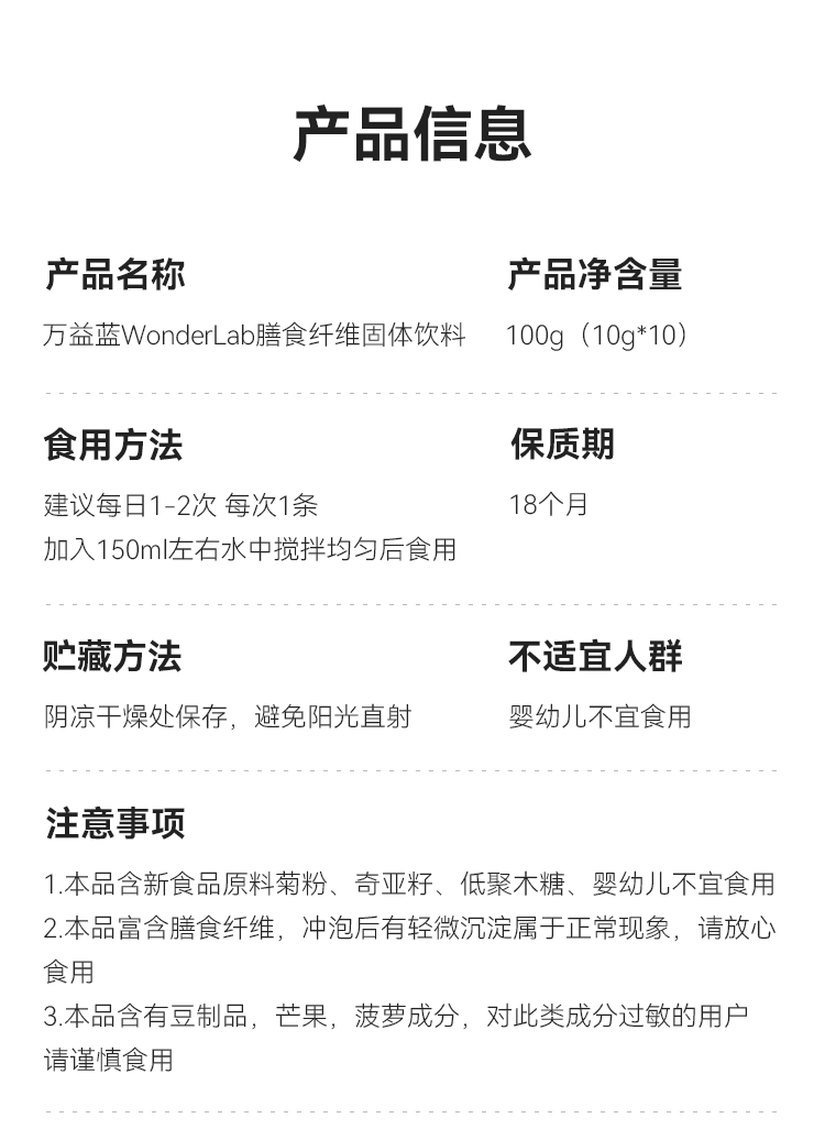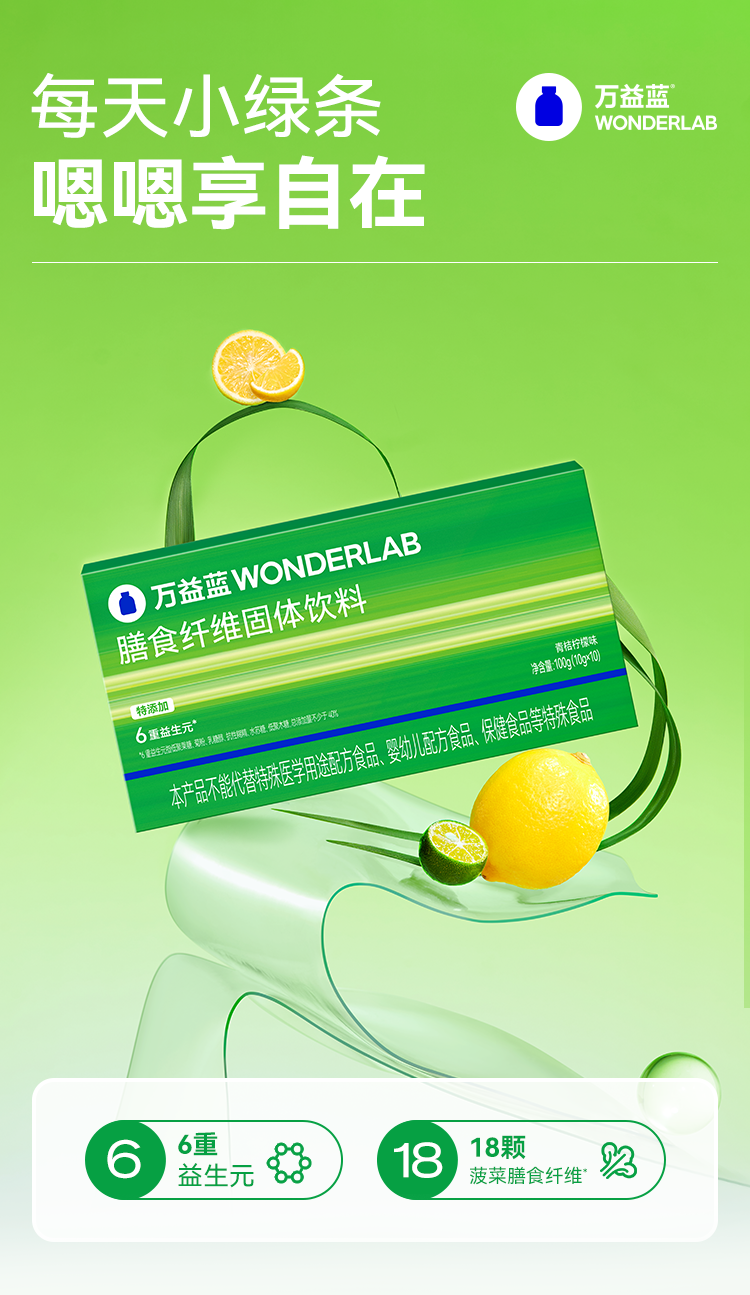 商品名称:万益蓝WonderLab 膳食纤维固体饮料(青桔柠檬味)_(10g*10)