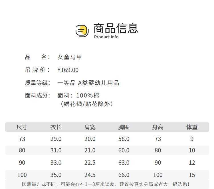 商品名称:儿童马甲女童宝宝背心坎肩婴儿轻薄马甲春秋款童装清新时髦上衣 065413