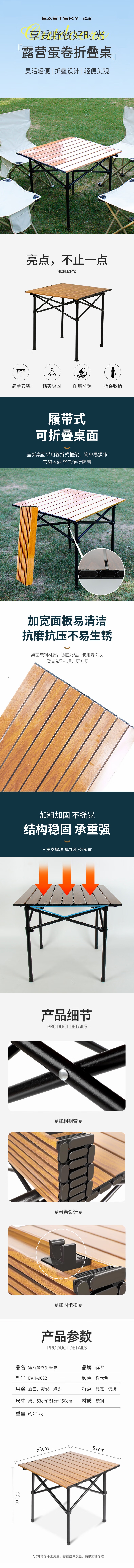 商品名称:驿客 露营蛋卷折叠桌(木色方桌)EKH-9022