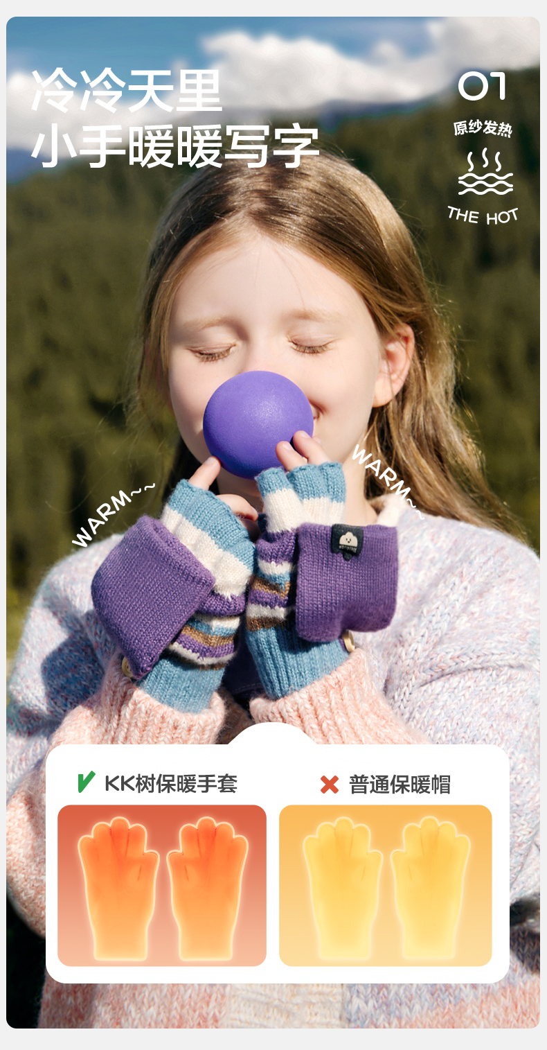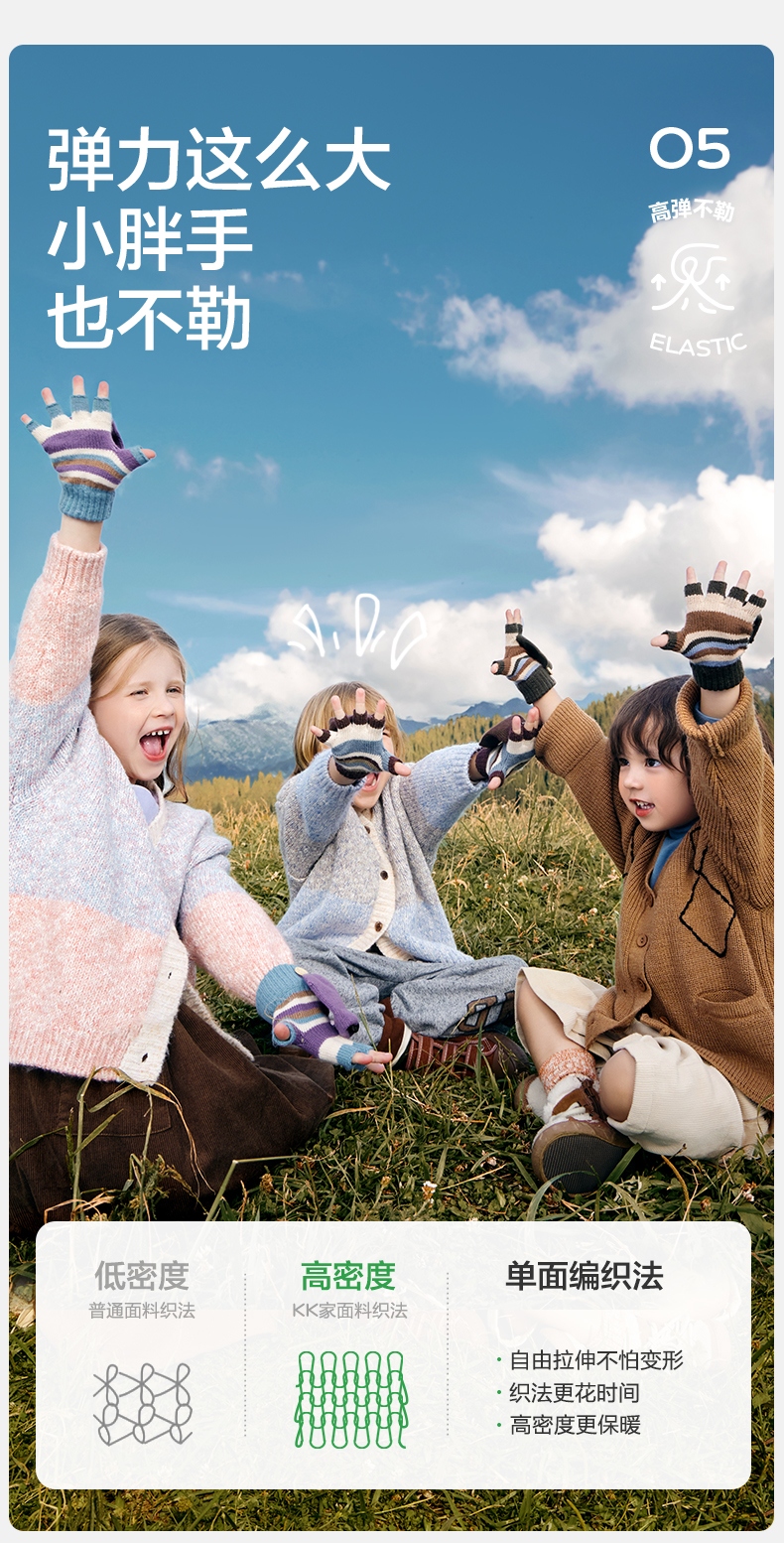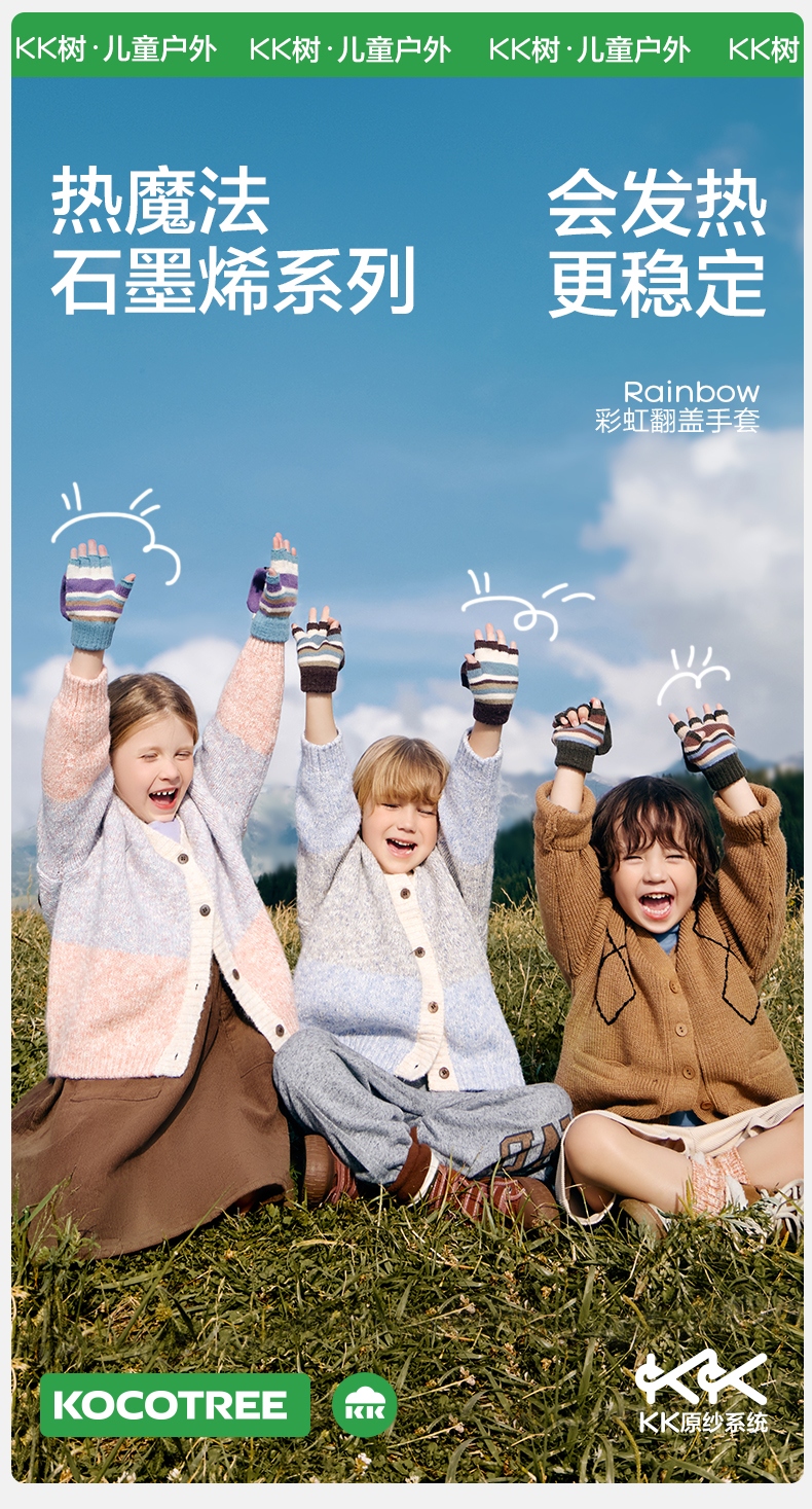 【直供】KK树儿童手套秋冬季半指五指翻盖保暖露指A类Rainbow彩虹翻盖手套