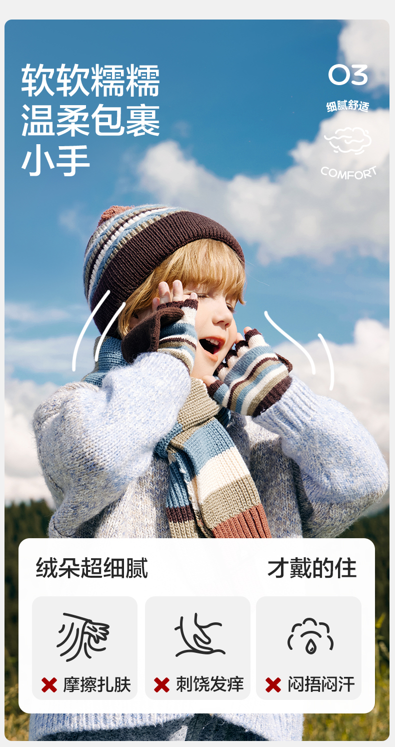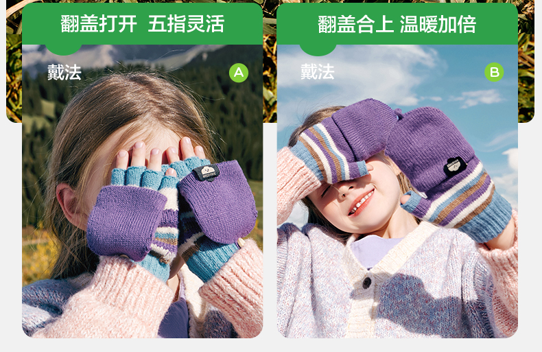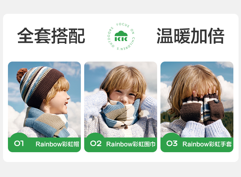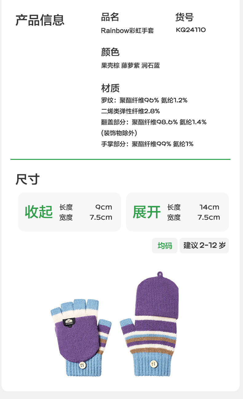 商品名称:【直供】KK树儿童手套秋冬季半指五指翻盖保暖露指A类Rainbow彩虹翻盖手套