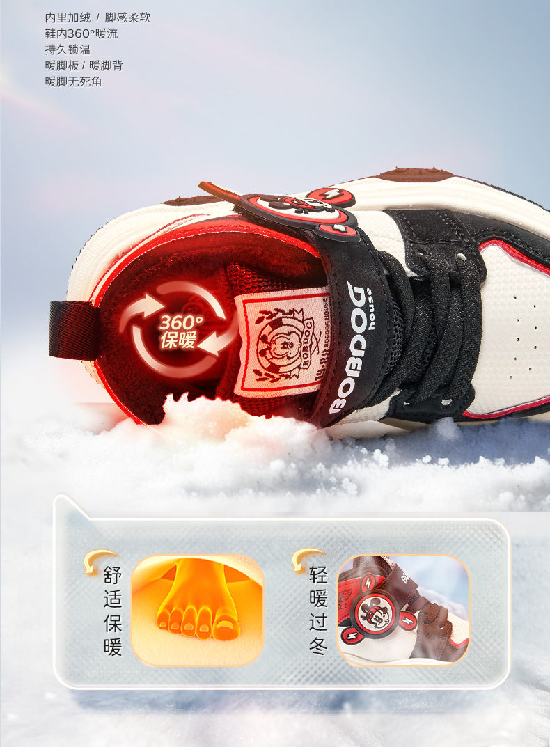 商品名称:巴布豆house童鞋冬季新款舒适百搭板鞋男童女童加绒加厚休闲运动鞋