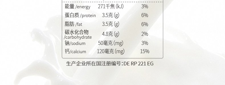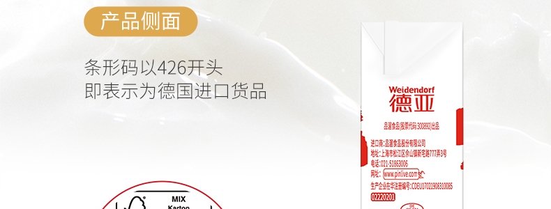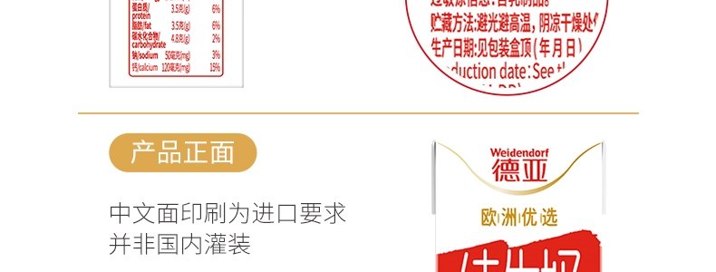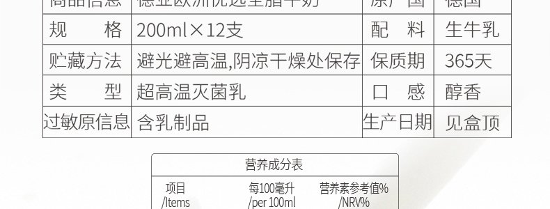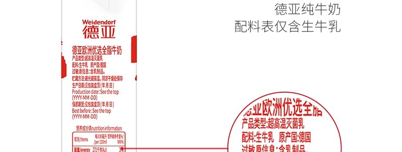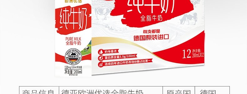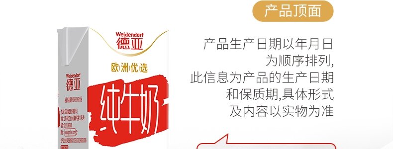 商品名称:德国 德亚(Weidendorf)3.5g 全脂牛奶 200ml*12盒